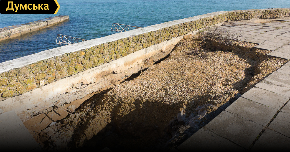 Море разрушает подпорную стену возле пляжа «Дельфин» — там образовалась огромная яма (фотофакт)