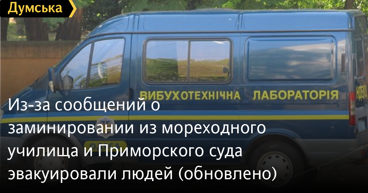 Из-за сообщений о заминировании из мореходного училища и Приморского суда эвакуировали людей (обновлено)Из Одесского мореходного училища рыбной промышленности, что на улице Мечникова, эвакуировали 200 человек. Это связано с анонимным сообщением о заминировании, которое поступило в полицию сегодня в 09:10. На данный момент специалисты взрывотехнической службы закончили проверку здания, никаких взрывных устройств не обнаружено. «Сотрудниками полиции принимаются первоочередные розыскные мероприятия по установлению личности и местонахождения человека, который предоставил ложные сведения», — отметили в пресс-службе ГУНП. Кроме того, в 10:20 поступило еще одно сообщение — о заминировании Приморского районного суда. «Все работники и посетители суда эвакуированы. На месте происшествия работают следственно-оперативная группа, кинологии и работники взрывотехнической службы», — говорится в сообщении. ОБНОВЛЕНО: информация о минировании суда также не подтвердилась. Из здания эвакуировали 85 сотрудников и посетителей. Телефонного хулигана разыскивают. СМЕРТЬ РОССИЙСКИМ ОККУПАНТАМ! Заметили ошибку? Выделяйте слова с ошибкой и нажимайте control-enter |