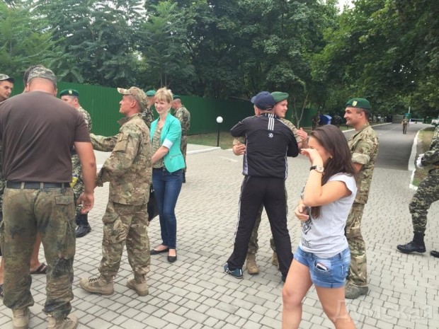 У комплекса Одесского погранотряда «зеленых беретов» встречали родные и волонтеры.