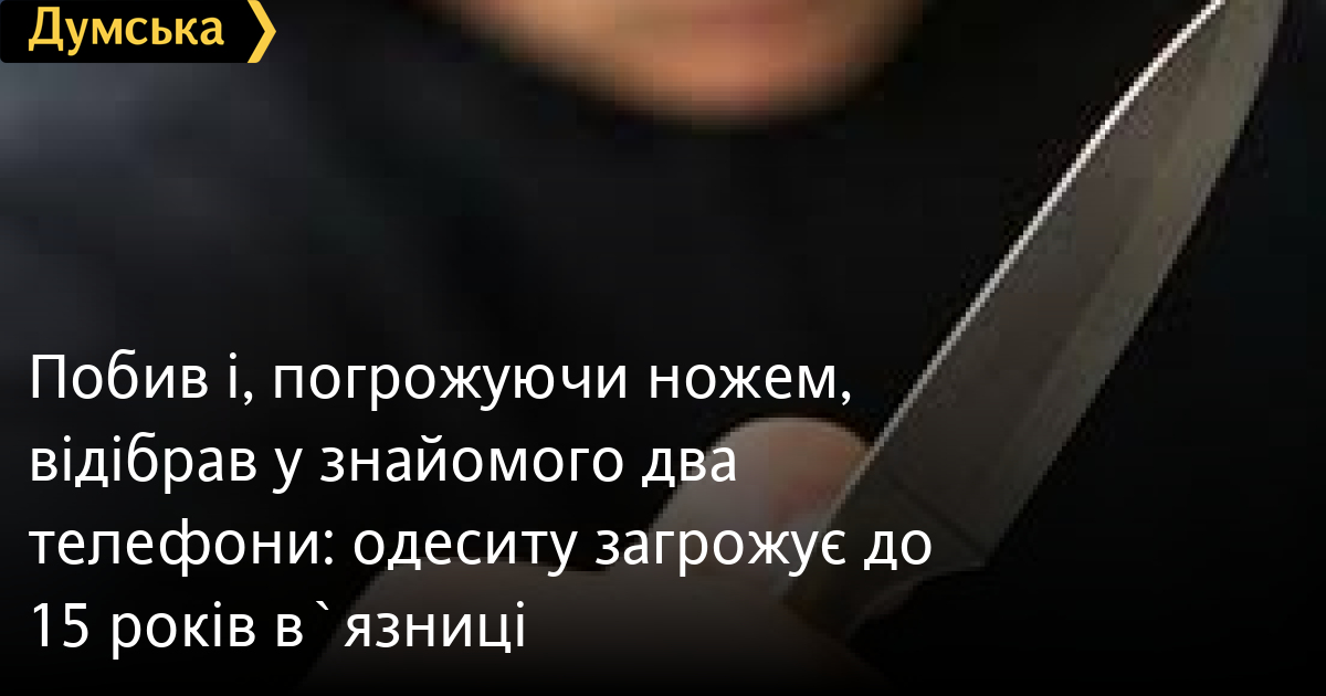 Побив і, погрожуючи ножем, відібрав у знайомого два телефони: одеситу загрожує до 15 років в`язниціОдесита, який побив знайомого і, погрожуючи ножем, відібрав у нього два телефони та гроші, затримали правоохоронці. Як повідомили в пресслужбі поліції області, чоловіки познайомилися в центрі міста й один із них запропонував другому зупинитися в нього в тимчасовому житлі за невелику плату. Увечері, випиваючи разом у покинутій будівлі на проспекті Небесної Сотні, господар вирішив пограбувати квартиранта. Він побив його руками та ногами, приставив ніж до шиї та відібрав два мобільні телефони й гроші. Після цього нападник втік, а потерпілий звернувся до поліції, оцінивши завдані збитки в чотири тисячі гривень. Уже через день поліцейські затримали зловмисника, який уже був судимий за розбій, грабіж і незаконне заволодіння транспортними засобами. Вони вилучили в нього один із вкрадених телефонів, другий він встиг продати. Чоловікові повідомили про підозру за ч. 4 ст. 187 Кримінального кодексу України та відправили його під варту. Санкція статті передбачає від восьми до 15 років позбавлення волі з конфіскацією майна. Помітили помилку? Виділяйте слова з помилкою та натискайте control-enter |