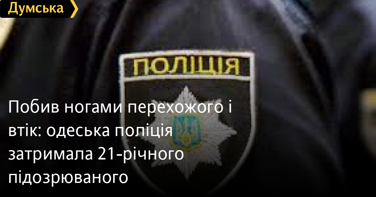 Побив ногами перехожого і втік: одеська поліція затримала 21-річного підозрюваного21-річного молодика, який наніс декілька ударів ногами незнайомцю, в результаті чого чоловік опинився у реанімації, затримала одеська поліція. Як повідомила пресслужба ГУНП, подія сталася біля торговельного центру на вулиці Генуезькій, де потерпілий разом із товаришем очікували на співбесіду щодо працевлаштування. Їх зустріли двоє чоловіків, з якими під час спілкування виник словесний конфлікт. Між двома незнайомцями зав’язалася бійка, в ході якої один із них кілька разів ударив ногами іншого по тулубу і втік. Потерпілий звернувся до медичного закладу, де йому діагностували закриту травму живота, внутрішньочеревну кровотечу та розрив селезінки, після чого прооперували. Про це лікарі повідомили правоохоронцям, які того ж дня встановили особу правопорушника та затримали його. «Протиправні дії порушника кваліфікували за ч. 1 ст. 121 Кримінального кодексу України (умисне тяжке тілесне ушкодження, тобто умисне тілесне ушкодження, небезпечне для життя в момент заподіяння) та повідомили йому про підозру. Санкція статті передбачає покарання у вигляді позбавлення волі на строк від п'яти до восьми років. Поліцейські помістили підозрюваного до ізолятора тимчасового тримання і клопочуть щодо обрання відносно нього запобіжного заходу у вигляді тримання під вартою», — повідомила заступниця начальника слідчого відділення відділу поліції № 5 Одеського районного управління поліції № 1 Альона Кумайгородська. Помітили помилку? Виділяйте слова з помилкою та натискайте control-enter Новини по цій темі: 29 липня 2025: В Усатово Одеської області сталася перестрілка: поліція працює на місці (відео, оновлено) 28 липня 2025: П'яний на "Ягуарі" або гіпертонік? Звільнений топ-посадовець одеської поліції хоче повернутися на службу 19 червня 2025: Дівчинку, яку шукали сотні одеситів, знайшли вбитою: поліція працює з чоловіком, ймовірно причетним до загибелі 27 травня 2025: Увели гектар в університету: на Одещині засудили земельних аферистів, але без посадки і Хвоста |