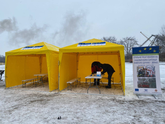 Комплексные тактические учения пожарно-спасательных подразделений ГУ ГСЧС в Одесской области прошли сегодня в Измаиле в районе 3-го грузо-перевалочного комплекса порта. Данное мероприятие стало завершающим этапом международного сотрудничества в рамках проекта «JERAD – совместное реагирование в чрезвычайных ситуациях на Дунае» по типу SOFT, направленного на повышение уровня безопасности населения путем увеличения возможностей аварийных служб и структур, ответственных за проведение спасательных операций. В общей сложности в мероприятии приняли участие 14 единиц специализированной аварийно-спасательной техники и около 80 сотрудников Измаильского отряда ГСЧС. За ходом учений наблюдало руководство главного управления ГСЧС в Одесской области, а также сотрудники инспектората чрезвычайных ситуаций «Дельта» Тулчинского уезда. На прибрежной территории были обустроены пункты обогрева и оказания медицинской помощи, размещена полевая кухня. В ходе учений было отработано четыре эпизода, каждый из которых должен был продемонстрировать технические возможности, а также профессиональный уровень измаильских спасателей. Согласно первой легенде, вблизи Измаила из-за штормового ветра и утраты ориентира на мель село небольшое пассажирское судно «Лебедевка». Вследствие толчка за бортом в ледяной воде оказались пять человек. Капитан теплохода с помощью спутниковой связи подал сигнал бедствия, который был получен дежурным службы Измаильского филиала АМПУ. Соответствующая информация о терпящем бедствие судне поступила и румынским коллегам из Тулчи. К месту бедствия спасатели прибыли на пожарной автоцистерне, а специализированная машина САРМ-С доставила моторную лодку. Дополнительно для спасения людей из воды была задействована бронированная разведывательно-дозорная машина (БРДМ), а снегоболотоход «Богун» обследовал территорию. Руководителем по ликвидации аварии был развернут штаб по проведению поисково-спасательных работ, привлечена комиссия по ТЭБ и ЧС Измаильского района. Первую медицинскую помощь пострадавшим оказали специалисты экстренной медицинской помощи и медицины катастроф. Второй эпизод: по причине замыкания электропроводки на борту «Лебедевки» возник пожар. Спасатели на катерах оперативно эвакуировали пассажиров, а в ликвидации огня пожарные задействовали плавучие мотопомпы. Третье «бедствие» произошло из-за повреждения топливного бака теплохода, возникшего в процессе снятия с мели. На поверхности воды образовалось нефтяное пятно. После обследования территории на воду вышло портовое судно «Меридиан», оснащенное необходимым запасом биопрепарата-сорбента в объеме тысячи литров. Специалисты установили на воде боновое ограждение. Нефтесобиральщик «Сборщик-6» занялся «уборкой» загрязняющих веществ, а «Меридиан» отбуксировал севший на мель теплоход к причалу. Последний эпизод напомнил о событиях четырехлетней давности, когда весной 2018 года во время большой воды со дна Дуная стали всплывать старые корабельные мины. По легенде, во время снятия «Лебедевки» с мели поднялся донный ил и всплыл предмет, похожий на мину. Группа водолазов-пиротехников на катере «СПРУТ» СК-Р произвела безопасную транспортировку находки для дальнейшего ее уничтожения. А специальный катер с развернутым сенсорным металлодетект