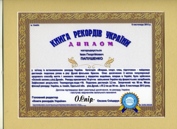 Достижение измаильчанина Ивана Папушенко попало в Книгу рекордов Украины.