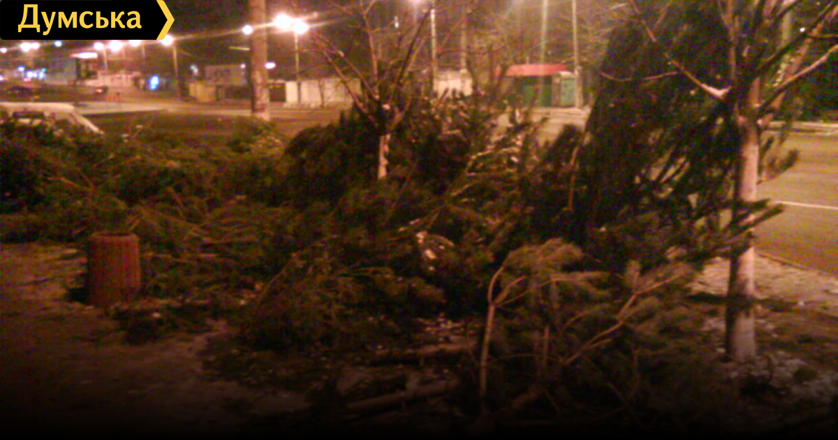 От редакции: Чуть-чуть подправил текст новости. Здесь, как я вижу, сидят эксперты. Вот скажите мне - кто должен убирать все это? Пока одни будут сваливать на продавцов — те на дворников , а улицы завалены по-прежнему. И какой орган так недобросовестно относится к своим обязанностям, что разрешил сбежать этим наглым елочникам, которые еще в 6 вечера пытались всучить припоздавшим прохожим елки по 70 гривен, а через полчаса просто побросали их, и растворились??? Кто за это отвечает?