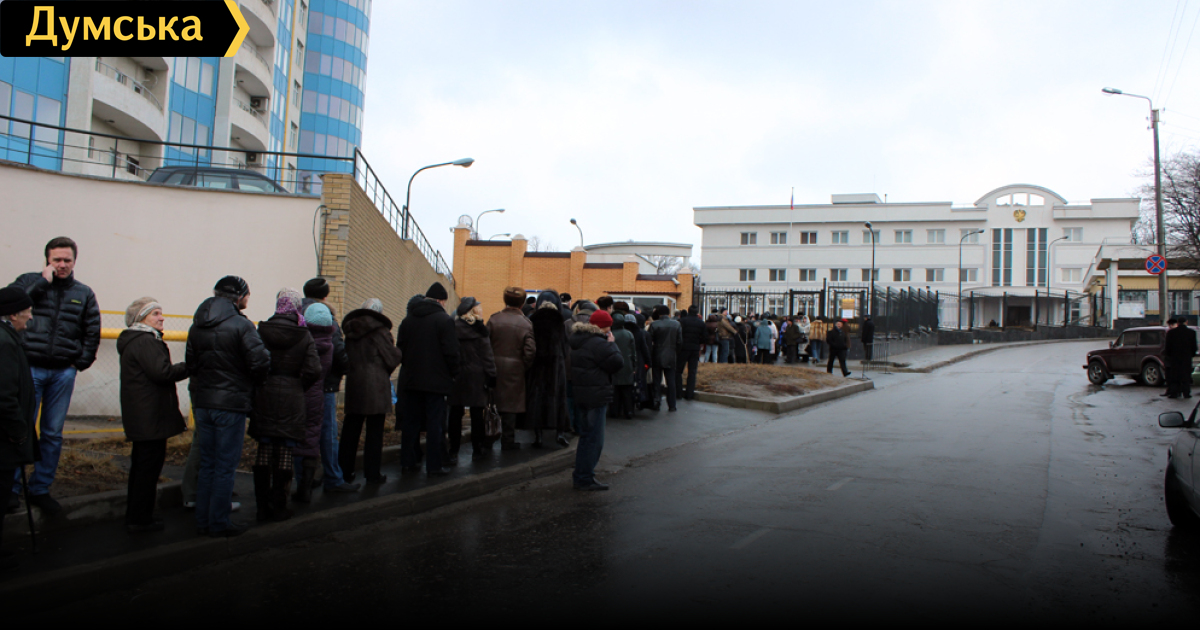 Выборы в РФ. В одесском генконсульстве России — огромная очередь. — Почему? — Сегодня пускают бесплатно!