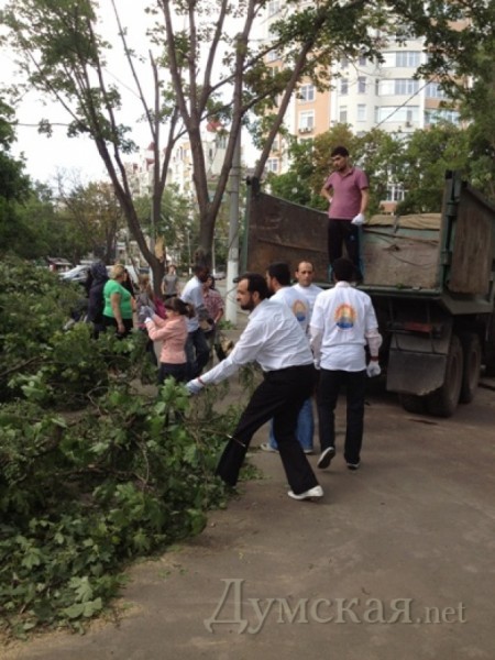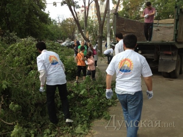 Уже 1 июня ряд представителей общественных организаций Одессы – «Альмасар» (Исламский общественный культурный центр), БФ «Соотечественники», БФ «Добрый самарянин» (протестанты-пятидесятники) — оказывали помощь коммунальщикам в расчистке улиц, дворов и скверов.