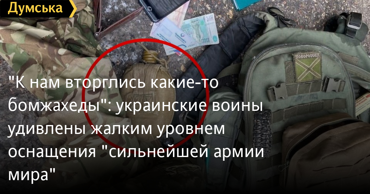 «Да у нас страйкболисты лучше оснащены, чем они, — удивляется командир одного из разведывательных подразделений ВСУ капитан Ф. - У них и удобные разгрузки, и системы связи, и туристическое снаряжение. А эти - вообще ничего. Даже тепловизоры у спецназа — большая редкость! К нам вторглись какие-то бомжахеды, это просто неуважительно с их стороны!»