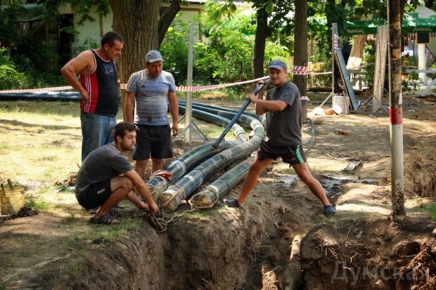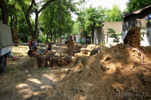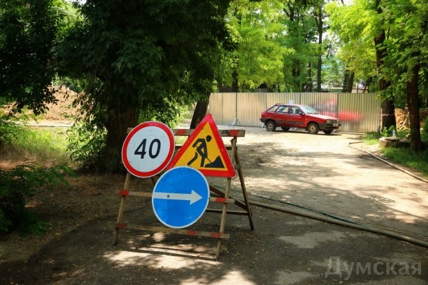 К подстанции «Маразлиевская», построенной в парке Шевченко, подводят коммуникации, и этот угол зеленой зоны временно недоступен для посетителей.