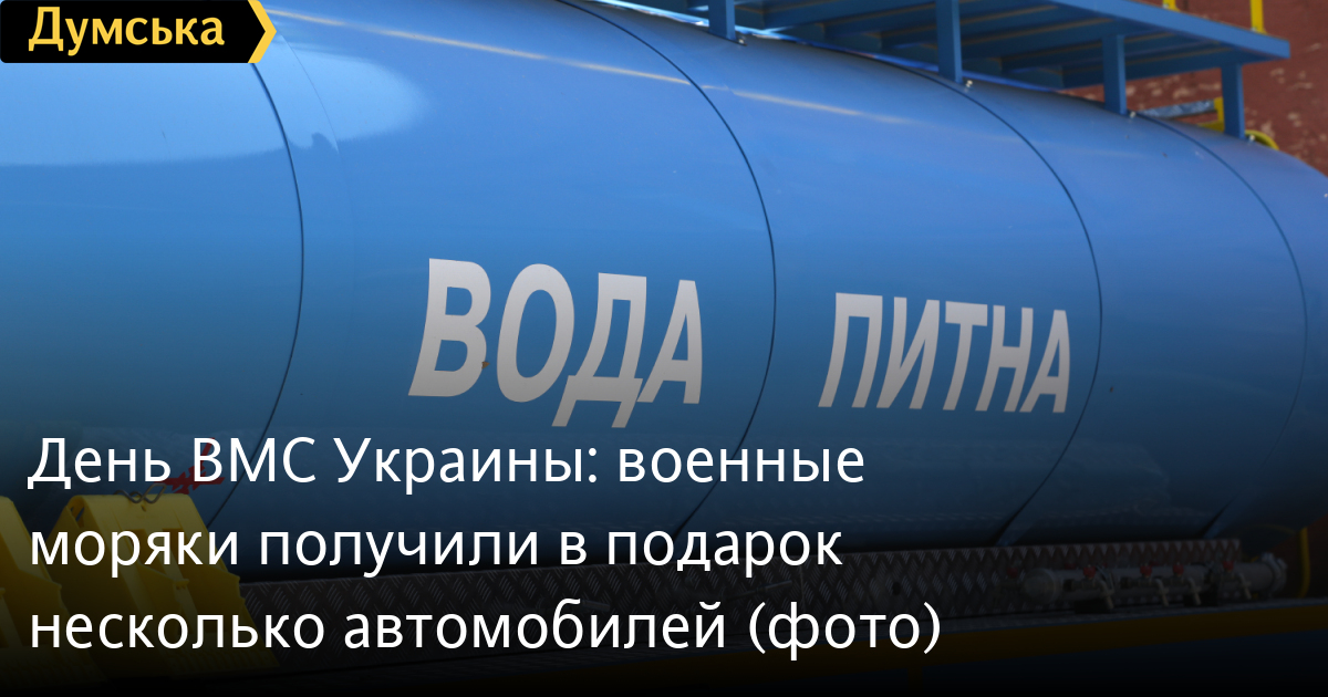 По словам заместителя командующего ВМСУ контр-адмирала Игоря Ступницкого, в преддверии Дня Военно-морских сил Украины военные моряки, дислоцирующиеся в Николаевской области, получили 12-тонный автоводовоз для перевозки чистой воды.