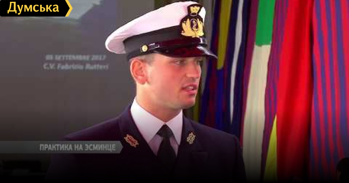 Итальянские моряки в Одессе. К причалу морвокзала с дружеским визитов пришвартовался итальянский эсминец. На его борту 88 курсантов академии военно-морских сил Италии. На корабле курсанты проходят практику.
