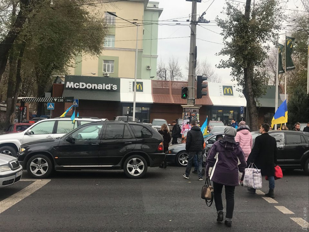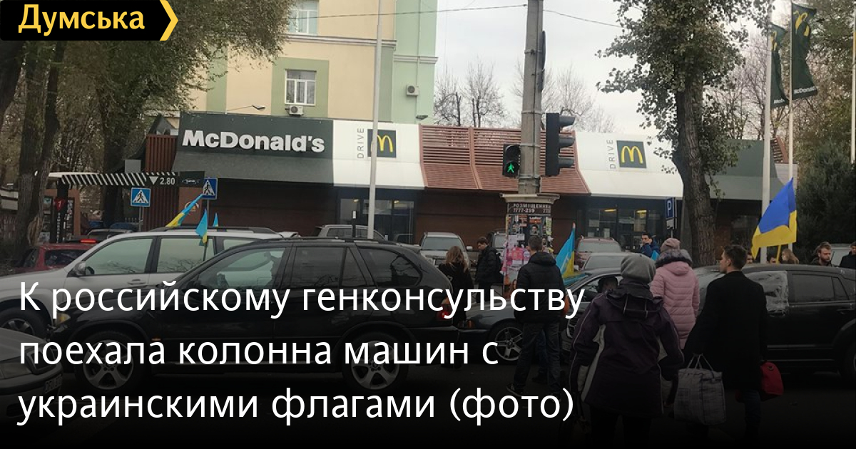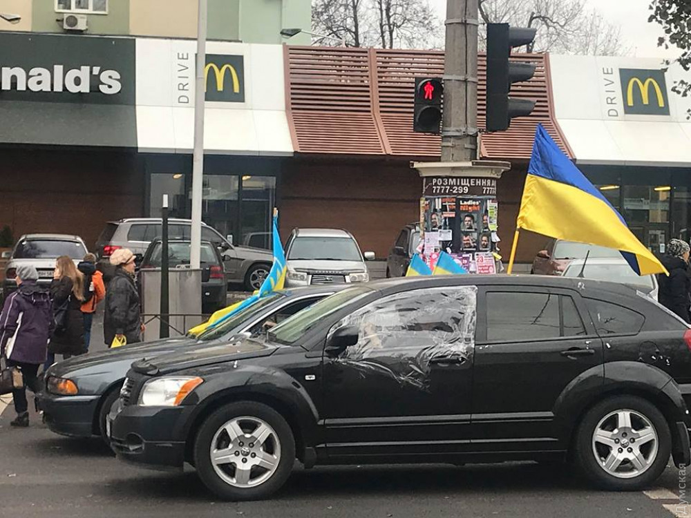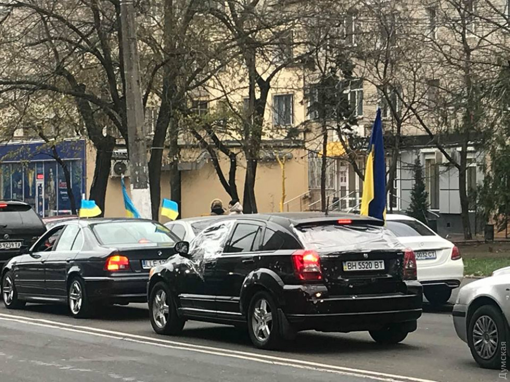 Колонна автомобилей с украинскими флагами только что проехала по проспекту Шевченко в сторону Аркадии.