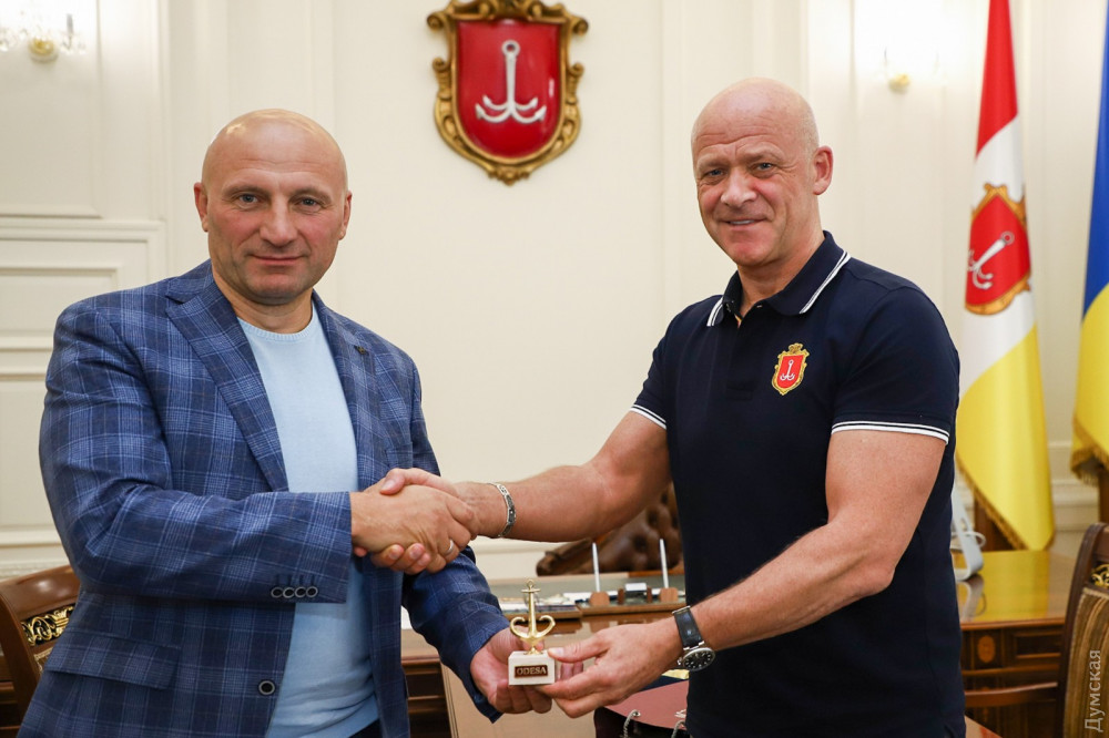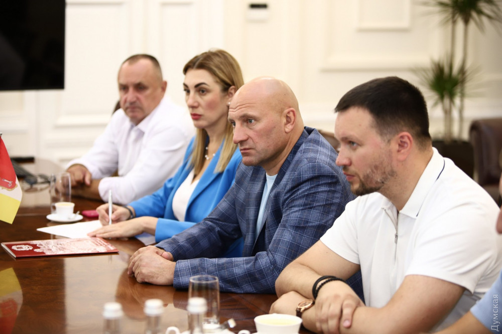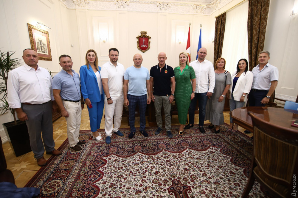 Мэр Черкасс Анатолий Бондаренко в сопровождении подчиненных приехал в Одессу и встретился с городским головой Геннадием Трухановым, вице-мэрами Михаилом Кучуком и Дмитрием Жеманом и другими чиновниками.