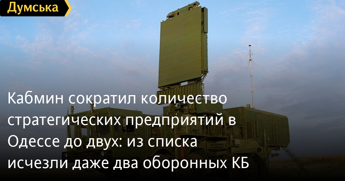 Кабинет Министров Украины утвердил новый список объектов государственной собственности, которые имеют стратегическое значение для экономики и безопасности государства. В него попало всего два предприятия — Одесский авиационный завод и ГПТП «Гранит» (ремонт радиоэлектронного оборудования и техники противовоздушной обороны).