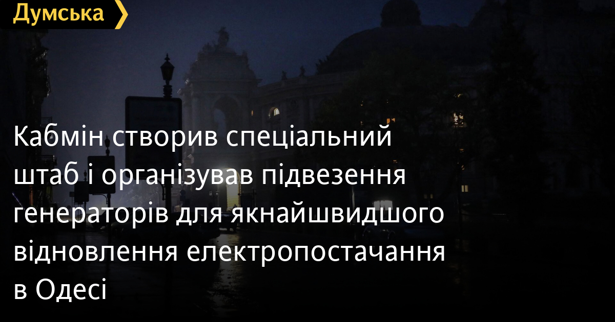 Кабінет міністрів України сформував штаб для роботи над якнайшвидшим подоланням блекауту в Одесі.