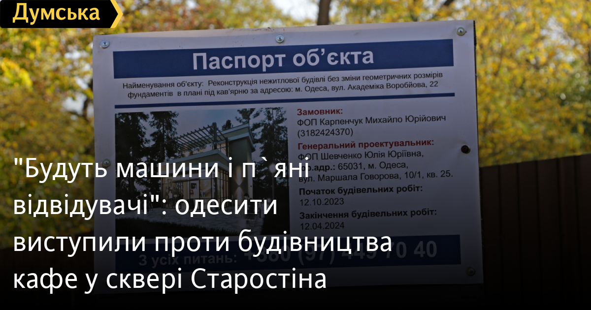 «Будуть машини і п`яні відвідувачі»: одесити виступили проти будівництва кафе у сквері СтаростінаПонад пів сотні містян вийшли в суботу, 22 жовтня, у сквер Старостіна, що на одеській Слобідці, щоб висловитися проти будівництва там двоповерхового кафе на місці зруйнованої будови. Як передає кореспондент «Думської», в акції взяли участь одеські громадські активісти та депутати. Порядок під час мітингу охороняли два десятки правоохоронців. Одесити побоюються, що після появи тут закладу громадського харчування єдина в окрузі зелена зона перетвориться на парковку і місце збору нетверезих громадян. «Мені 82 роки, я живу в п'ятиповерхівці поруч і хочу іноді вийти на свіже повітря. Але з будівництвом цього ресторану це буде неможливо, тут зупинятимуться машини, будуть п'янки та інше. Це єдиний сквер в окрузі, куди можна прийти з дітьми для прогулянки. Цьому скверику всі радіють — можна посидіти під деревами — тихо і спокійно. Але тут вирішили зробити справжній бардак — кафе зі стоянкою», — каже місцева мешканка Надія Тихонова. Учасники акції написали звернення до голови Одеської обласної військової адміністрації Олега Кіпера, під яким підписалося понад 40 осіб. Кафе у сквері, нагадаємо, вирішив звести депутат Одеської міської ради від забороненої партії ОПЗЖ Михайло Карпенчук, затриманий у липні цього року за підозрою в хабарництві. За його словами, напівзруйнований об'єкт він придбав ще 2016 року, а викупив його у міста не попередній власник, а третя людина перед ним. Депутат заявив, що на «реконструкцію без зміни геометричних розмірів» отримано всі необхідні документи. Однак на ділі все виглядає по-іншому. У сквері виставлено двометровий паркан, що обгородив ділянку понад 300 кв. метрів, а невелику капличку, побудовану в 40-х роках минулого століття, яка була об'єктом реконструкції, кілька днів тому було повністю зруйновано будівельниками. Іншими словами, проводиться не реконструкція старого приміщення, а його повне знищення з будівництвом нового об'єкта. Активістка Ольга Писаренко розповіла, що за депутатом Карпенчуком тягнеться шлейф не зовсім законних дій на території району. «Ця земля у сквері належала школі 76, але була «віджата». Люди обурені, вони проти будівництва — це єдина зелена ділянка на всій Слобідці. Спочатку він побудує тут ресторан, потім парковку, а потім захопить усю територію скверу. Тут нічого не можна будувати, крім дитячих майданчиків, це зелена зона», — каже активістка. Одеський історик Олександр Бабич розповів, що закинута каплиця, яку остаточно зруйнували будівельники, була збудована на території цвинтаря, де поховано німецьких, румунських та італійських військовослужбовців, які загинули під час Другої світової війни. «На цьому місці розташоване румунське військове кладовище (з'явилося під час окупації Одеси, — ред.). На початку війни їх ховали в різних місцях, потім ухвалили рішення перенести всіх загиблих в Одесі на це місце. На місці 11 лікарні раніше був румунський госпіталь, тому всіх померлих там румунських військовослужбовців також ховали тут. На цьому місці кілька тисяч поховань. Також тут є італійці та німці. Італійці збудували тут каплицю, де відспівували католиків, це були моряки і льотчики. Через ці поховання ми можемо потрапити у великий міжнародний скандал із нашими стратегічними партнерами»,