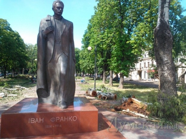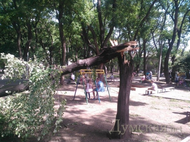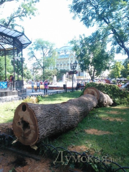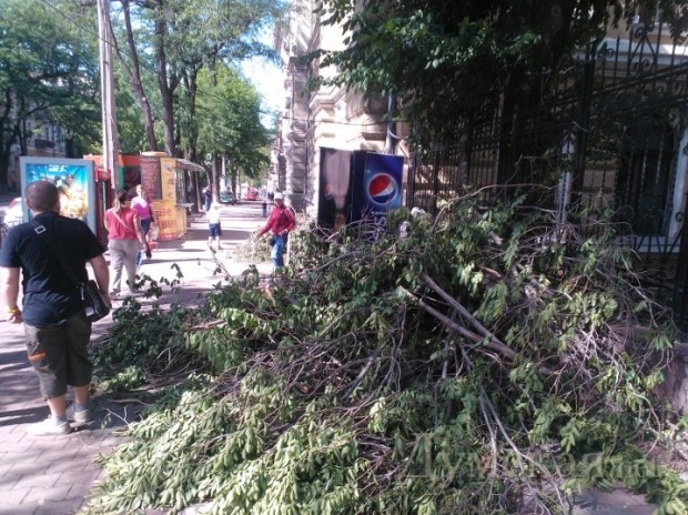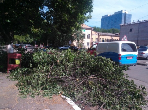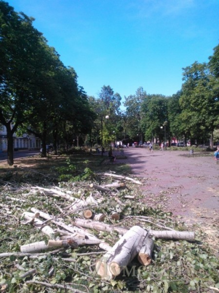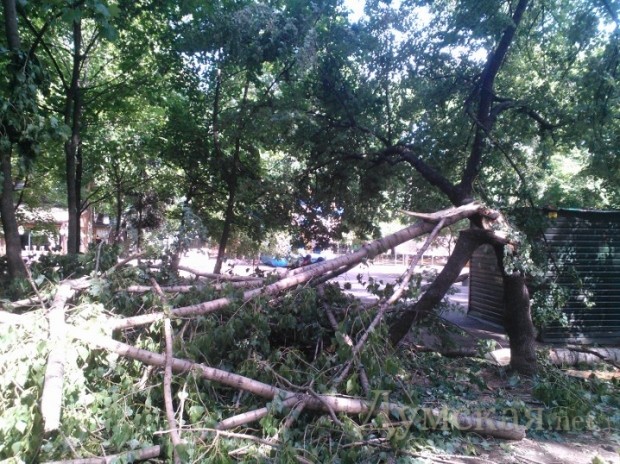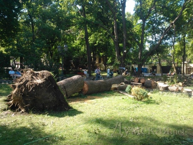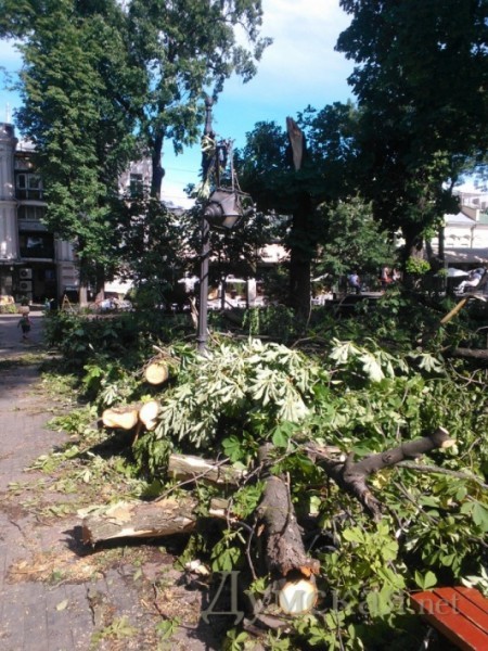 На Греческой площади, у «черной дыры», расколовшееся дерево в любой момент может свалиться на летнюю площадку кафе. Но мужественные посетители заведения как ни в чем не бывало попивают пивко. Завелен ветками и Городской сад. Рабочие бензопилами аккуратно распилили огромное столетнее дерево, которое рухнуло на клумбе рядом с ротондой, но так и не вывезли бревна.