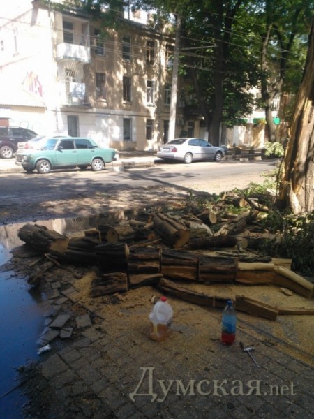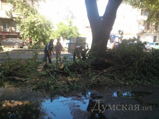 В воскресенье сотрудники коммунальных служб наконец распилили огромное дерево, которое рухнуло на улице Новосельского и перекрыло половину дороги между Тираспольской и Преображенской. Также окончательно распилили и вывезли дерево, которое обрушилось на углу Спиридоновской и Нежинской.