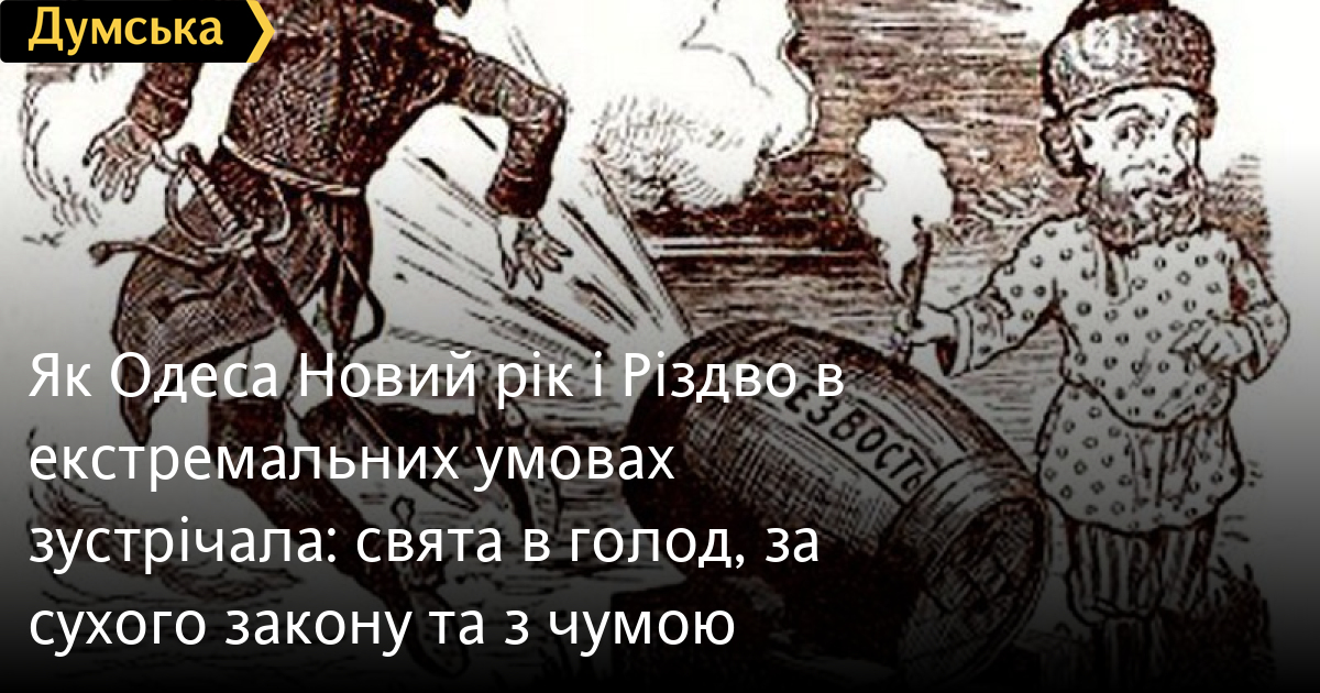Як Одеса Новий рік і Різдво в екстремальних умовах зустрічала: свята в голод, за сухого закону та з чумоюРіздво і Новий рік відзначали в Одесі з самого моменту «перезаснування» міста 1794 року, коли воно після російського завоювання стало значною мірою християнським. У різний час свята проходили по-різному. Були й по-справжньому веселі, з відповідною атмосферою і достатком на столах, але були й такі, що припадали на періоди катаклізмів, воєн і революцій. «Думская» згадує найнезвичайніші та найскладніші різдвяно-новорічні дні в одеській історії. Сьогодні — третя частина нашого матеріалу. Перша і друга — тут і тут. ГОЛОДНІ Як ви зрозуміли з вищесказаного, далеко не завжди одесити зустрічали різдвяні свята навіть у відносному достатку. В їхній історії було чимало відверто голодних епізодів, коли люди обходилися мізерним набором страв, а то й однією пайкою хліба. Перша світова. Перебої з поставками продовольства почалися вже в 1915 році, 1918-й місто зустрічало в цілковитих злиднях. Зусиллями влади, що змінювала одна одну, зовсім катастрофи вдалося уникнути, поки не настав фатальний 1921-й. Одеса вже зовсім радянська. У перших числах січня газета «Известия Одесского совета» істерично повідомляє: «Голод біля порога Одеси. Досі ми говорили про наближення катастрофи. Тепер вона — в наявності. Є вже всі її ознаки. Частішають випадки голодної смерті, цинга, страшне вимирання робочої худоби тощо». Але й тоді місто, на відміну від сіл, утрималося на межі. Масового мору не сталося. Хоча, звісно, святковий стіл одеситів (попри атеїзм більшовиків, Різдво зберігало свій статус як «день відпочинку» до 1929 року) був вельми бідним. Наступна продовольча криза пов'язана з Голодомором 1932-1933 років. Попри те, що торкнувся він насамперед сільської місцевості: міста забезпечували централізовано, — на ситуації в Одесі ситуація позначилася більш ніж. Люди, які вмирали в провінції, масово кинулися в обласний центр. Їм намагалися протидіяти. Співробітники НКВС (міліціонери та прикордонники) вбивали за спроби просто потрапити на вулиці, що ваблять світлом і запахом їжі (в поданні голодувальників), де все ще працювали хлібні магазини Про будь-яку гуманітарну політику і мови не йшло. Радянська влада робила виняток тільки для дітей — у них не стріляли, а намагалися підібрати й організовано помістити у відповідні установи. Але вдавалося насилу. Іноді й зовсім не виходило. Одеський історик, учасник Другої світової Яків Савченко згадував, що в зовсім малолітньому віці разом із сестрою пішов із загиблого села нинішньої Кіровоградської області, де на той час від голоду вимерло до половини жителів, переважно діти. Справа дійшла до канібалізму. Зовсім маленький Яків і його сестра довго поневірялися країною, кілька разів їх затримувала міліція, але їм вдавалося втекти. В кінцевому підсумку майбутній фронтовик і кандидат історичних наук все ж опинився в одеському Першому показовому дитячому містечку імені Комінтерну (зараз на цій території основні корпуси Юракадемії), де пережив багато чого. Його хоробра сестричка, на жаль, згинула. Про її долю нічого не відомо. Вранці нового 1933 року на вулицях Одеси знайшли 75 тіл, зокрема 12 дитячих