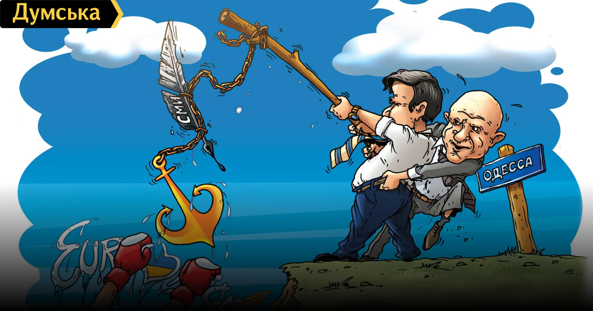 Это карикатурист "Думской" — одесского издания. Созданного одесситами и для одесситов. Соответственно, для карикатуриста (как и для всего издания) интересна в первую очередь Одесса, её проблемы, достижения и прочее. Соответственно, именно одесские власти "царствуют" в одесских карикатурах — что логично.