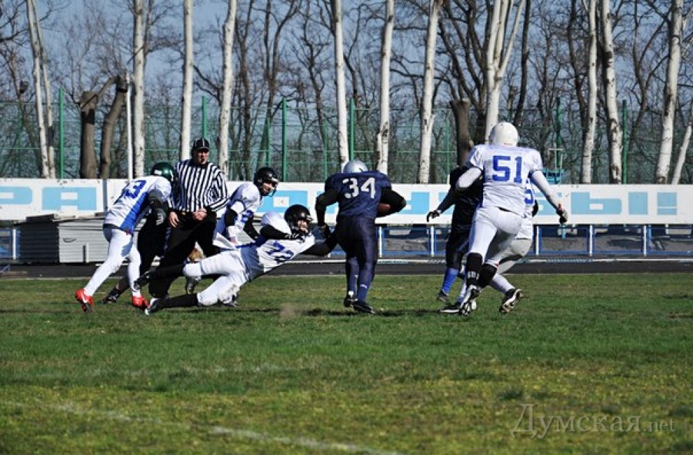 На одесском стадионе «Динамо» состоялся товарищеский международный матч по американскому футболу, в котором наши «Пираты» принимали молдавский клуб «Сентинелс» из Кишинева. Как передает «Победа», первый «блин» комом не стал, и одесситы одержали уверенную викторию со счетом 42:14. По словам главного тренера «пиратов» Дениса Юхимовича, матч проходил в непривычных погодных условиях. «Вроде бы и солнце светило, но низкая температура и сильный шквалистый ветер внесли свои коррективы в игру. Поначалу было очень сложно, было много необязательных потерь и ошибок, связанных именно с этим, причем у обеих команд. Но потом ребята разыгрались, разогрелись и смогли порадовать самых стойких и преданных болельщиков нашей команды хорошей игрой», — сказал он. До старта национального первенства «Пираты» планируют провести в Одессе еще одну товарищескую встречу – с киевскими Славянами». Ну а осенью они отравятся на матч-реванш с молдаванами в Кишинев. СМЕРТЬ РОССИЙСКИМ ОККУПАНТАМ! Заметили ошибку? Выделяйте слова с ошибкой и нажимайте control-enter |