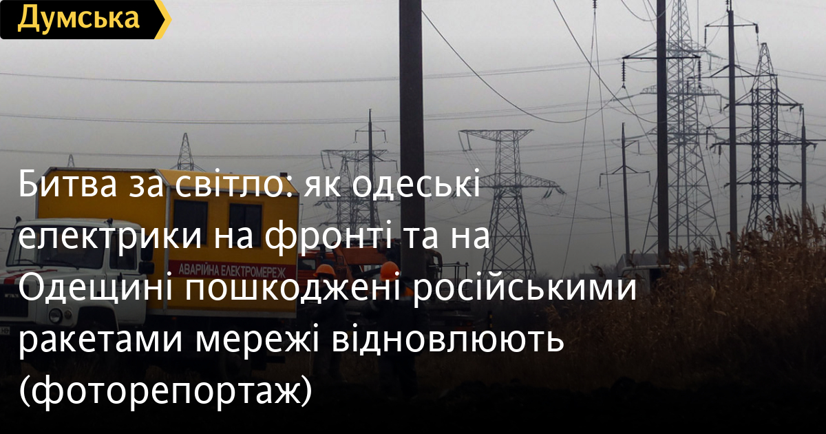 Минулого понеділка, 5 грудня, російські терористи увосьме завдали масованого удару по енергосистемі України. Із 70 крилатих ракет, випущених ворогом, українська ППО збила понад 60, проте повністю уникнути влучень не вдалося. У результаті кілька міст знову занурилися у морок. Зокрема, Одеса виходить із блекауту вже третю добу. Енергетики роблять неможливе, намагаючись усунути наслідки терористичних атак. Кореспондент «Думської» Олександр Гіманов побував на одній із локацій і поспілкувався з бригадою електромонтерів компанії «ДТЕК Одеські електромережі», які повернулися з відрядження до звільненого Херсону, щоб повернути світло Одесі. Промоклий вітер і неприємний дрібний дощ добре спостерігати з вікна своєї квартири, нехай і позбавленої електрики. Проте відновлювати цю саму електрику в таку погоду — задоволення сумнівне. Ми перебуваємо в Одеській області, недалеко від місця прильоту російської ракети. Її уламки досі розкидані в полі, вибухова хвиля пошкодила лінії електропередачі, що живлять обласний центр. Бригада електромонтерів працює тут уже кілька годин — після того, як ліквідували обрив на іншій ділянці. Чоловіки тягнуть через розоране поле багатожильний сталевий дріт, щоб потім підняти його за допомогою автовишки та закріпити на опорі за двадцять метрів над землею. Інша група обварює пошкоджені осколками ділянки металевих опор. «Тут були пошкоджені металоконструкції, зірвало дроти, — розповідає майстер центру з ремонту ліній електропередачі Станіслав Богунов, поки ми переходимо до наступної опори. — Для цієї роботи додаткові матеріали не потрібні, тут роботи на один день». Основна складність, за словами енергетика — погода і болото. Розораний ґрунт, немов трясовина, хапає робітників за гумові чоботи, колеса автотехніки додатково обгорнуті ланцюгами. На ділянці працюють дев'ять електромонтерів, дві автовишки та два допоміжних автомобілі. Два дні тому вони відновлювали світло у визволеному Херсоні. «Як почалася війна, ми їздили в деокуповані Бородянку, Гостомель, Бучу, Ірпінь, — розповідає Станіслав. — Потім були в Краматорську, Слов'янську, Лимані, а потім уже в Херсоні. Налагодили там лінію від Миколаєва на 154 кВ. За три тижні зробили понад дев'ять кілометрів у районі Посад-Покровського». За словами водія автовишки Юрія Деордієнка, різниця між роботою на Одещині та на звільнених територіях — у кількості залишених ворогом мін та в обстрілах. «Тут ми можемо спокійно під'їхати на машині, а там замінували все: дороги, узбіччя, під'їзди до опор і самі опори, — розповідає Юрій. — Спочатку сапери працюють, потім ми. Усі ходили однією стежкою, обгородженою стрічками. Сапери теж не все можуть, після нас вишка вибухнула. Хлопці в порядку, а машина постраждала». Крім звичайного спорядження, одеським електрикам доводилося надягати бронежилети, а звичні помаранчеві пластмасові каски міняти на кевларові шоломи. «У Лимані росіяни стояли за сім кілометрів, але в Херсоні складніше було: бомбили сильніше, — згадує одесит. — Бувало, сьогодні підняли лінію, а її через дві години знову росіяни поклали своїми ракетами. Доводилося їхати назад і піднімати дроти. Спілкувався раз із військовим, так він каже — у вас небезпечніша робота буде, ніж у нас, я хоч під деревом, в окопі, а ви по стовпах лазите, вас здалеку видно». Щоразу Юрій і йо