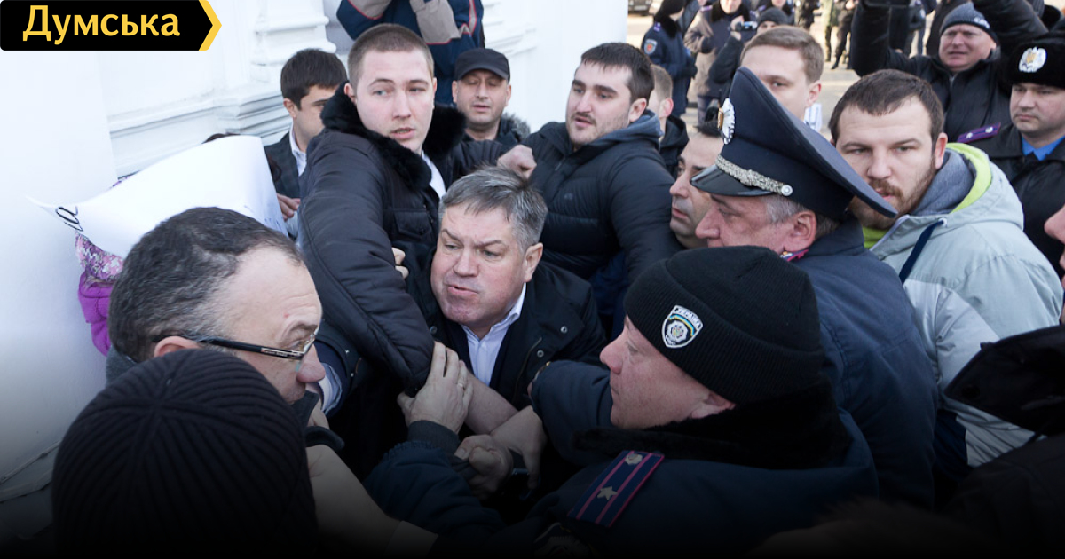 Наш фотокорреспондент зафиксировал сегодняшнюю потасовку перед зданием городского совета. Напомним, участники акции против застройки центра города высотками пытались «люстрировать» путем опускания в мусорный бак ряд членов муниципального собрания — Григория Кваснюка, Сергея Кушнира, Алексея Косьмина и Левана Самхарадзе.