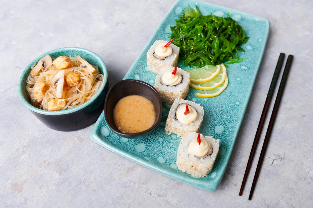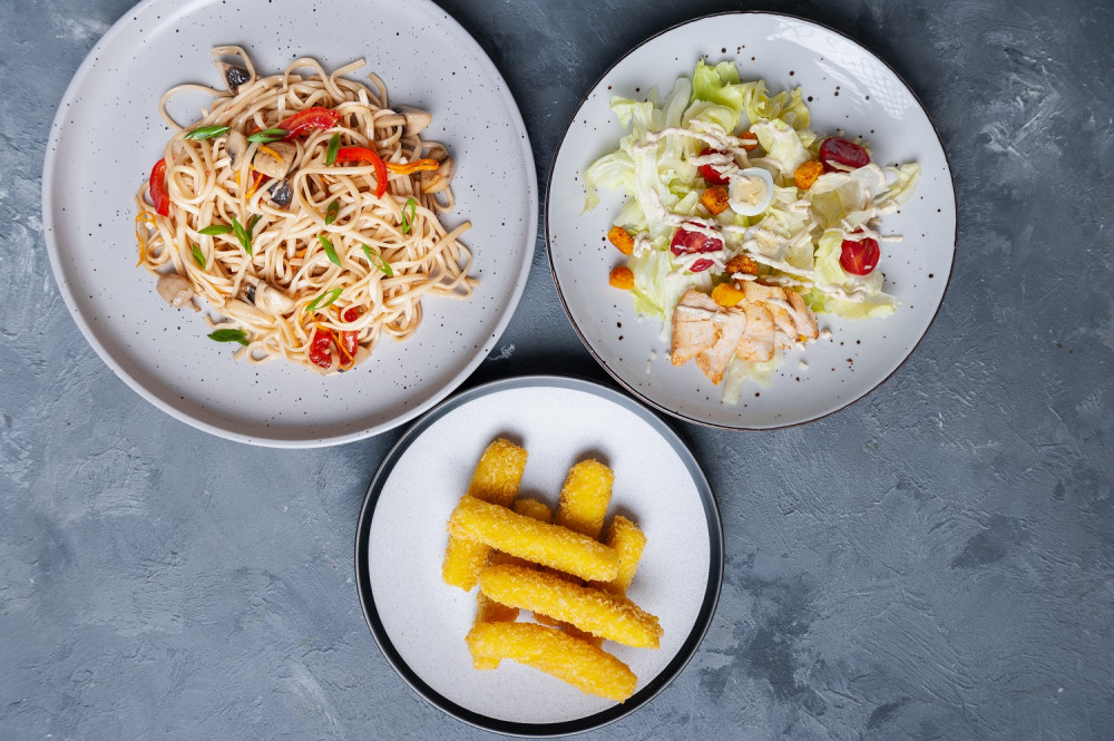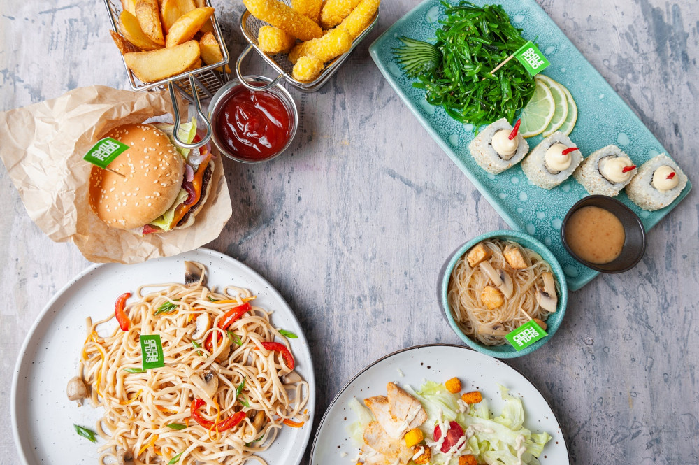 В меню представлены блюда японской, итальянской и американской кухни. Можно одновременно заказать суши, роллы, пиццу, лапшу, рис, суп, салат, чизбургер, сырные палочки, куриные крылышки. Также появились боулы – трендовое блюдо здорового питания с рисом, мясом, морепродуктами и овощами.