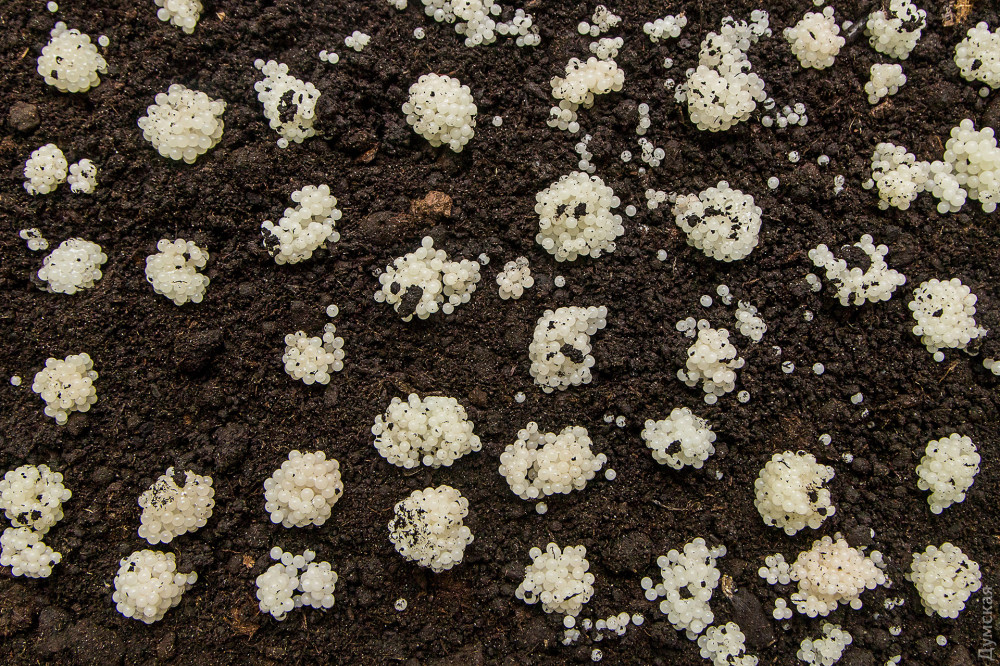 В нынешнем году из-за плохой погоды высадку еще не начинали, хотя обычно это происходит во второй половине мая. Пока фермеры подготавливают огороженную территорию на берегу лимана: две овечки в специальном передвижном загоне заменяют собой газонокосилку, тщательно выедая бурьян. Через пару дней землю засеют травой перко — гибридом сурепицы и рапса с большим содержанием белка. Это любимое лакомство брюхоногих.