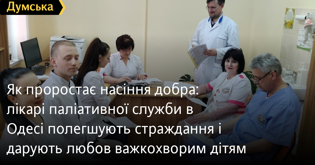 Як проростає насіння добра: лікарі паліативної служби в Одесі полегшують страждання і дарують любов важкохворим дітямПаліативні пацієнти — це люди, які страждають на невиліковні захворювання, у яких, говорячи медичною мовою, обмежений прогноз життя. На жаль, серед паліативних пацієнтів часом опиняються і діти. В Одесі зареєстровано кілька сотень таких діток. В одному тільки Суворовському районі — 95. У цьому матеріалі «Думська» розповість про мобільну службу паліативної медичної допомоги при міській поліклініці №2. У квітні службі виповнюється рівно три роки. Ми поспілкувалися з директоркою поліклініки Катериною Патраманською про роботу паліативного центру в період воєнного стану. Не приховуючи сліз, наша співрозмовниця розповідає, як нещодавно медик служби разом із тяжко хворою дівчинкою посадив насінину в горщику, і незабаром вона проросла. Крихітка, яка раніше не виявляла особливих емоцій, була у нестямі від щастя і навіть вмовила маму принести горщик із паростком у поліклініку, щоб похвалитися. Щиро раділи цьому всі лікарі паліативної служби, а дівчинка — тому, що допомогла розвинутися новому життю і відчула свою значимість. Мабуть, перш за все, заради посмішок маленьких пацієнтів і працюють лікарі служби. Потрібно сказати, що до 2020 року паліативні пацієнти також отримували допомогу від поліклініки, проте з появою служби вона стала більш ефективною. «По-перше, при поліклініці з'явилося багато спеціального обладнання для реабілітації, а працювати з маленькими пацієнтами почали вже не просто педіатри, а ціла мультидисциплінарна команда з восьми осіб, у складі якої і анастезіолог-реабілітолог, і хіруг, і онколог-гематолог, і ерготерапевт, і психолог», — розповіла Катерина Патраманська. Зараз під опікою поліклініки перебуває 642 дитини з інвалідністю, 95 з яких потребують паліативної допомоги. Найчастіше це діти з важкими хронічними захворюваннями нирок, серцево-судинної системи, ДЦП, онкологічними та неврологічними захворюваннями. Деякі отримують допомогу, а часом і стаціонар, вдома, деякі можуть залишатися в денному стаціонарі при поліклініці. Для цього тут є відділення реабілітації з так званою «кліткою» (розвантажувальна система), призначена для діток із ДЦП, балансувальна дошка, терапевтичний тренажер МОТОмед, драбина-бруси та багато іншого. Для дітей проводять кінезіотерапію, пісочну терапію і заняття для дрібної моторики з пластиліном. Усю допомогу, включно з медикаментами і терапією, пацієнти отримують безкоштовно. Незначних успіхів у тутешніх пацієнтів немає! Кожен стусан м'яча або новий рух, навіть спроба — це ривок до прогресу і радість для всіх оточуючих. Насамперед, звісно, для мам. Фахівці служби на зв'язку зі своїми пацієнтами в буквальному сенсі 24 години на добу. Найчастіше телефонують медикам навіть не за порадою, а за добрим словом. «Тому що ми розуміємо, наскільки важко цим діткам, і не менш важко їхнім рідним. Ми докладаємо великих зусиль, щоб полегшити цей біль. На жаль, ми не можемо вилікувати дитину, але спрямовуємо нашу допомогу на профілактику та зменшення страждань. Адже кожна людина потребує уваги та співчуття», — каже Катерина Іванівна. Головна місія лікарів служби — зробити так, щоб хвороба не заважала маленьким пацієнтам насолоджуватися дитинством. Для цього в поліклініці часто відбу