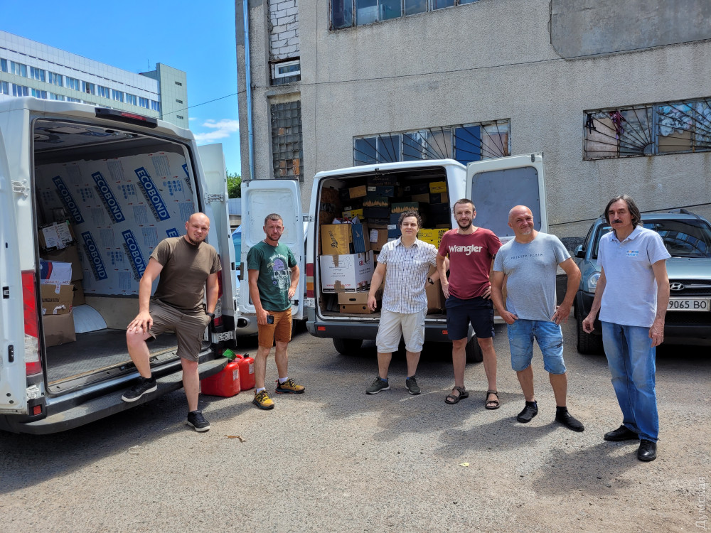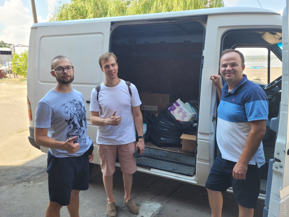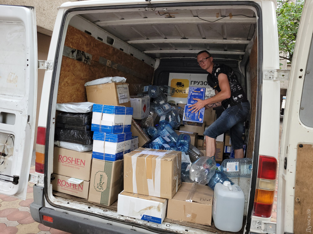 Бусик, на якому ми сьогодні їдемо, вчора колесив Одесою, збираючи гуманітарні вантажі, так необхідні Миколаєву: маскувальні сітки та гігієнічні засоби в Гончаренко центрі на площі Дерев'янко, аптечки та рації в офісі «Думської» на Канатній, продуктові набори та медикаменти у Міському волонтерському центрі на Рішельєвській та дві палети собачого корму у притулку на Аеропортівській. Вільне місце, що залишилося в кузові, заповнили баклажками з питною водою — вона ніколи не буде зайвою в Місті Корабелів, якестраждає від спраги.