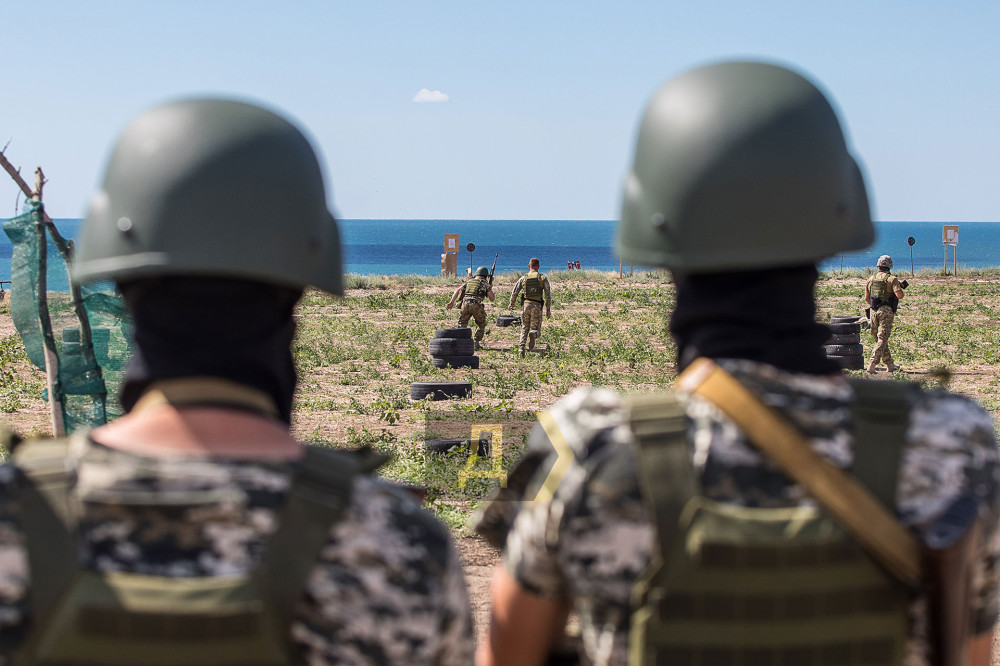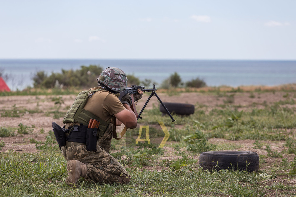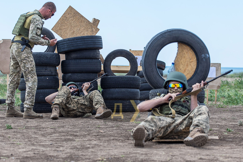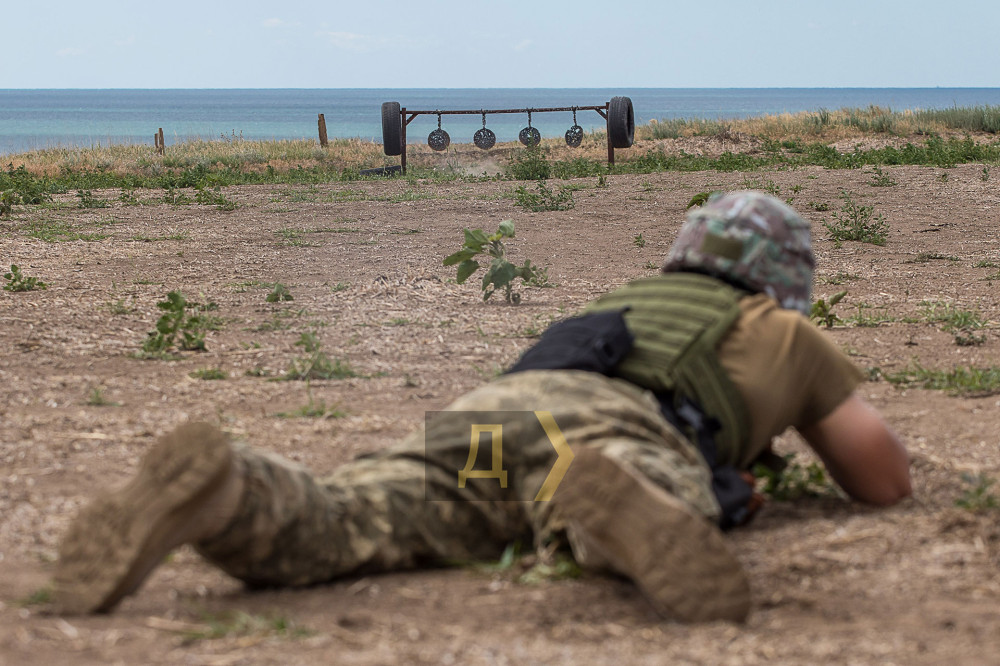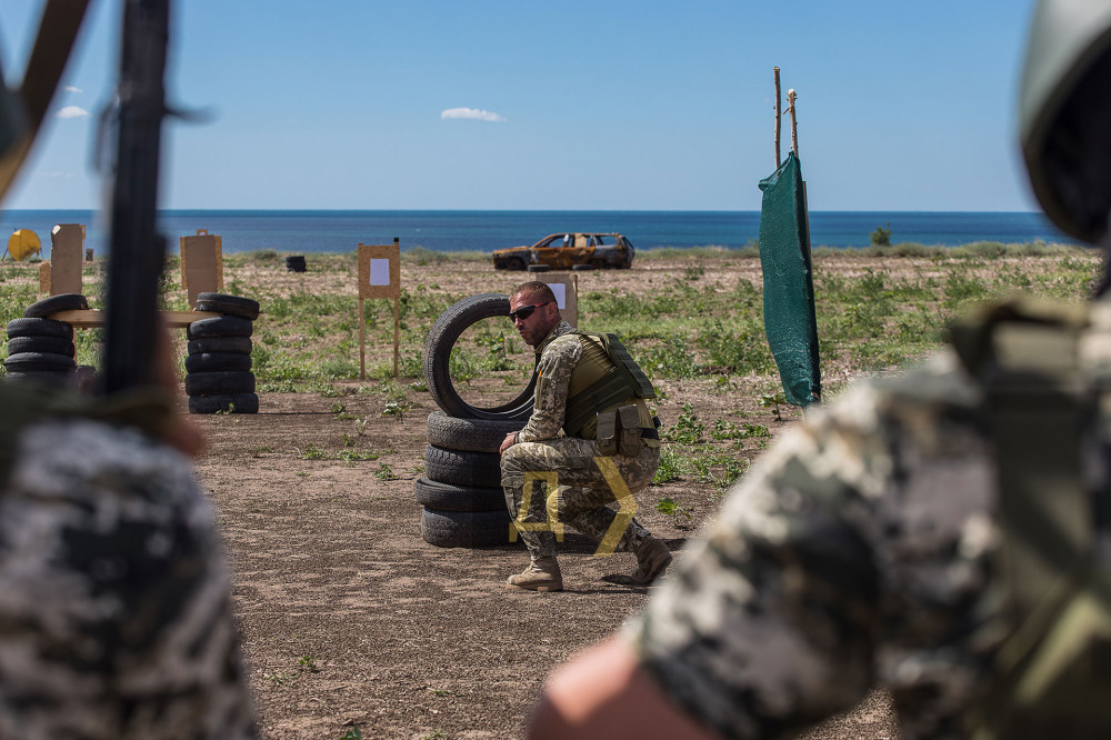 Один из районов Одесской области. На берегу установлены мишени, в качестве укрытий — автомобильные покрышки. Неподалеку ржавеет остов сожженной иномарки. Мы на одном из полигонов, где тренируются военнослужащие 126-й отдельной бригады территориальной обороны Вооруженных сил Украины.