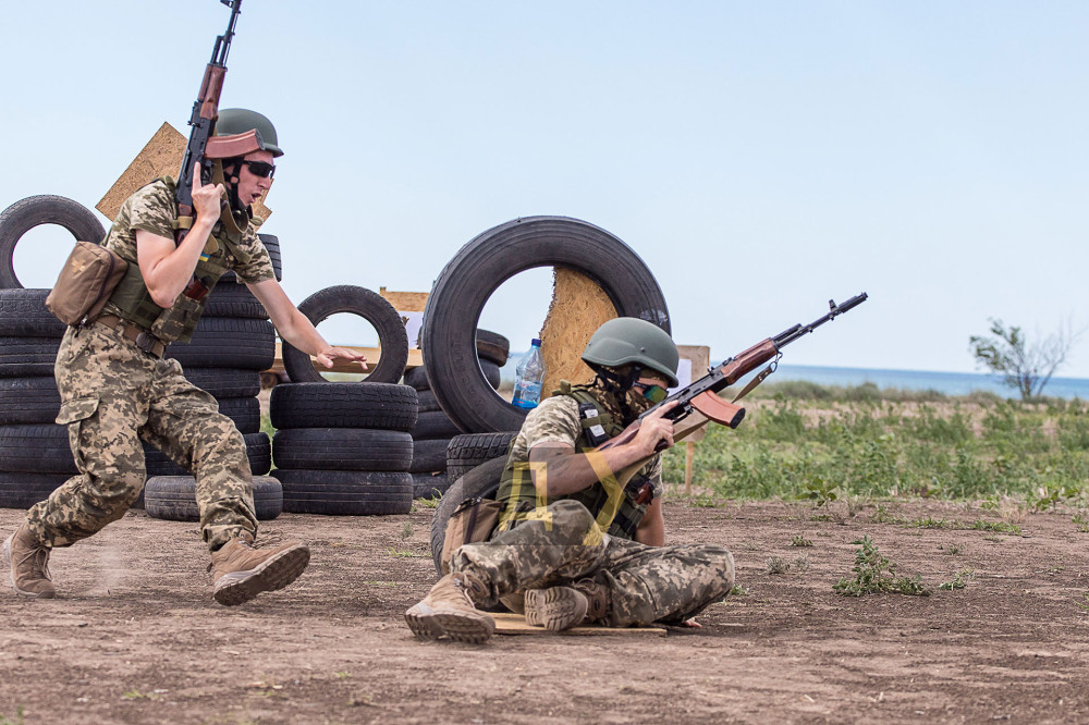 Сегодня здесь отрабатывают свои тактические навыки штурмовые группы. Вчерашние менеджеры, повара, портовые работники и журналисты оттачивают мастерство владения стрелковым оружием и улучшают боевое слаживание — так это действо называют военные. Людей абсолютно разных профессий объединяет одно желание — защищать родную землю от вторжения оккупанта.