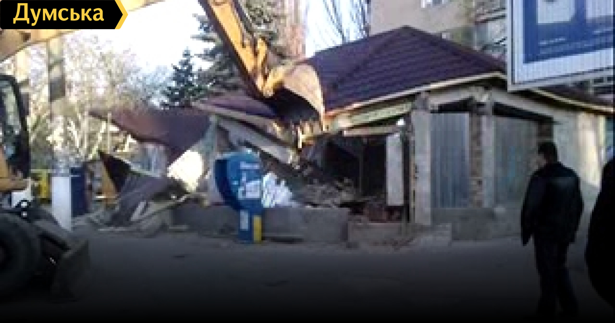 Как это делалось в Одессе. Снос магазина с помощью экскаватора