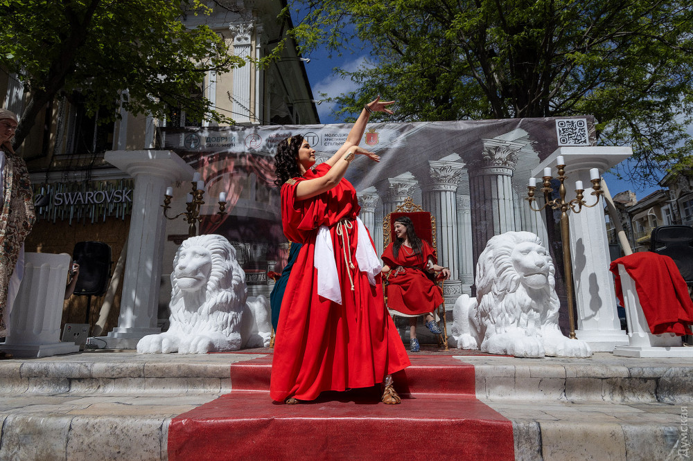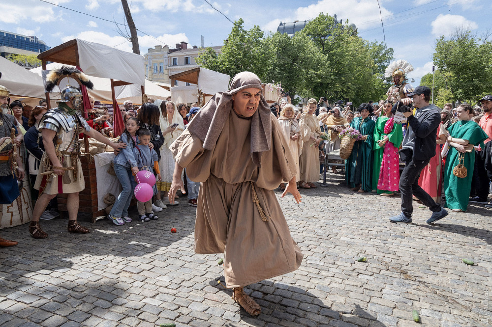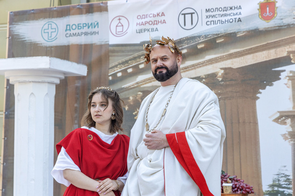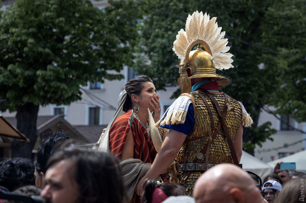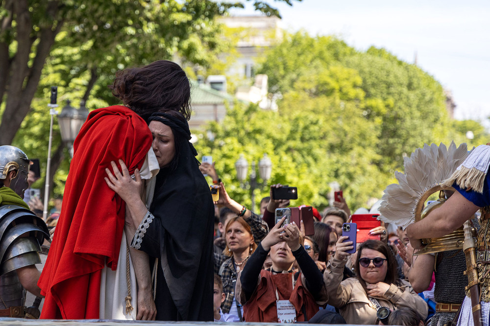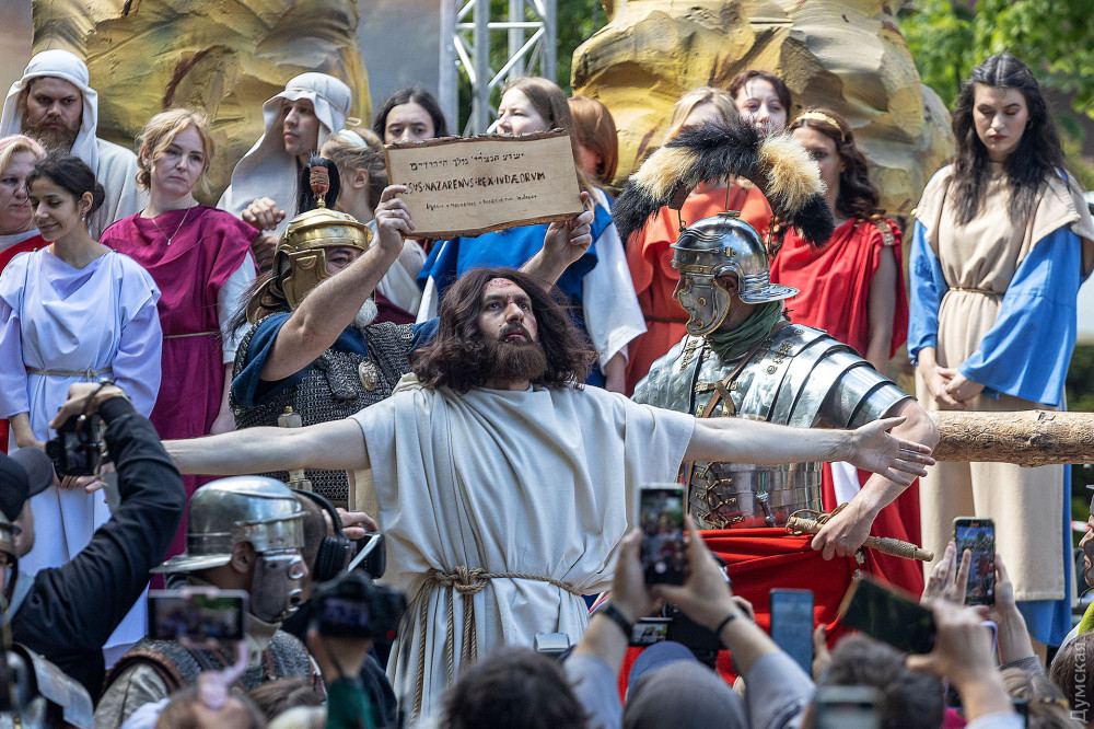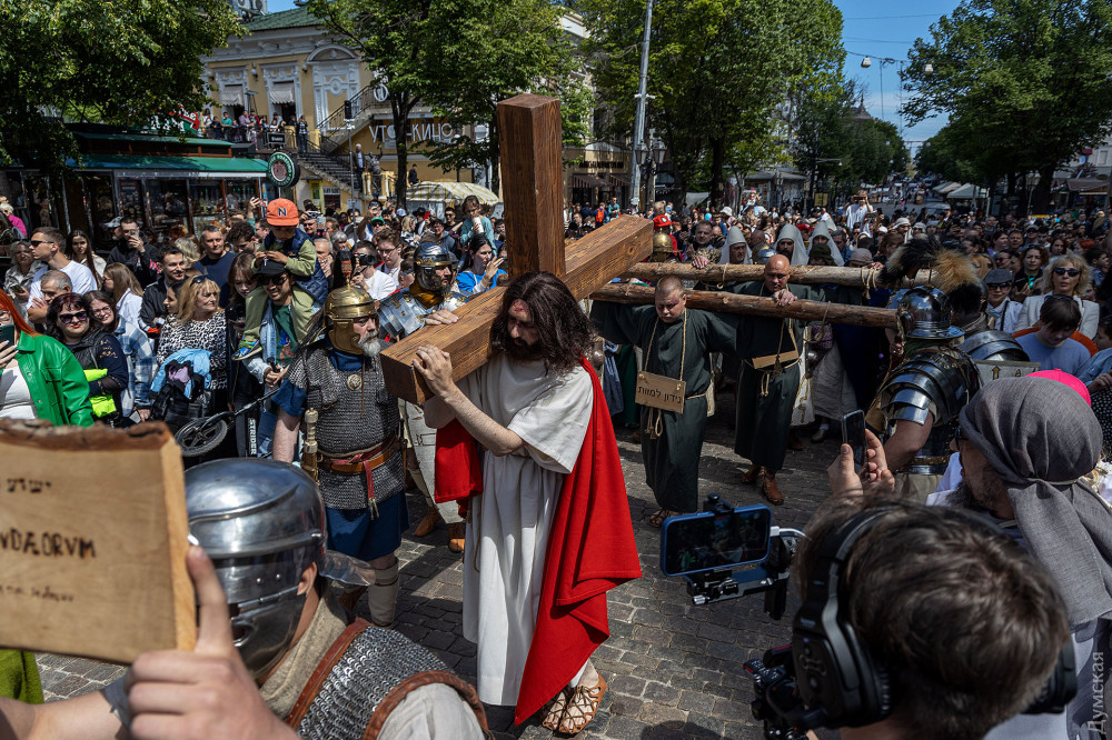 Минулого року барвиста костюмована вистава відбувалася здебільшого у сквері Гамова на Молдаванці — у центрі міста показали лише невелику сценку з Понтієм Пилатом.