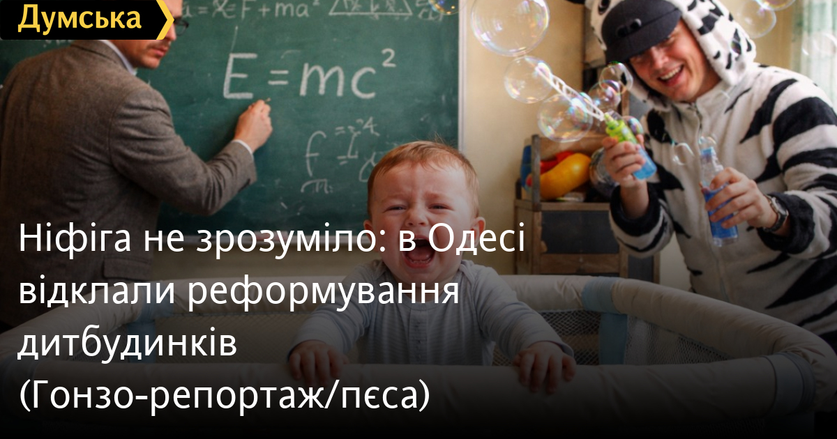«Ніфіга не зрозуміло»: в Одесі відклали реформування дитбудинків (Гонзо-репортаж/п’єса)Питання реформування дитячих установ було складним на всіх етапах — від прийняття закону до його реалізації в Одесі. На сесії 25 лютого депутати мали голосувати за зміни щодо двох будинків дитини, однак одностайності серед них не було. На спільному засіданні чотирьох комісій стало зрозуміло: питання сесію не пройде. Його зняли з порядку денного, щоб доопрацювати. Наш Дмитро Жогов вийшов із зали з відчуттям, що був присутній не на робочій нараді, а на генеральній репетиції драми.Суперечка про долю 114 вихованців «Сонечка», в тому числі 27 паліативних, вийшла нервовою і хаотичною далі це вже майже п'єса, а не протокол. АКТ 1. ПЕРЕД БУРЕЮ СЕСІЄЮ Велика зала засідань одеської мерії. Кілька довгих столів. Меншість у президії, більшість навпроти. Повітря густе, передгрозове. Костянтин Талалаєв, віце-мер, головуючий. Нам треба швидко обговорити. Зараз попередньо обговоримо реорганізацію двох дитячих будинків. Потім винесемо рішення на найближчу сесію міськради. Сподіваємося задати один одному всі питання, щоб розуміти, куди ми рухаємося. Далі вибір: третій або перший будинок дитини. З чого почнемо з психоневрологічного або звичайного? Передає слово новопризначеному начальнику служби у справах дітей. Ілля Зугравий, начальник служби у справах дітей. У «Сонечку» (комунальне некомерційне підприємство «Спеціалізований психоневрологічний будинок дитини 3 «Сонечко») 114 дітей. Стільки-то в Туреччині. Стільки-то діти алкоголіків. Відсоток влаштування в сім'ї впав з 79% до 78%. Депутати тримають удар, нагадуючи, що ініціатором реорганізації була військова адміністрація. Ірина Куценко-Єсенович, депутатка. Дитину з «Сонечка» перевели до обласного центру «за віком належить». Через три дні він помер. Там зараз 114 дітей. З них 27 паліативні (з важкими невиліковними захворюваннями, ред.). З ними працюють професіонали-медики. Або залишаємо «Сонечко» як є, або створюємо повноцінні центри медреабілітації та паліативної допомоги один або два. Але не руйнуємо те, що працює. Скажіть чесно: чи потрібні службі у справах дітей в Одесі Будинки дитини? Ілля Зугравий. Службі у справах дітей потрібно о третій годині ночі мати місце, куди можна привезти дитину. Надія Задорожна, перша заступниця начальника Одеської міської військової адміністрації. Якщо ви виходите в комунікацію з депутатами, то інформацію потрібно подавати не шматочками, а давати повну стратегію. Тому що ніфіга, вибачте, не зрозуміло. А якщо ви поясните, для чого це робиться адже спочатку є концепція, її і потрібно розповісти. Сергій Страшний, депутат. Будь ласка, скажіть: при зміні статусу в цій установі будуть педагоги чи лікарі? Ілля Зугравий (Похмуро). Соціальні працівники. Страшний з місця відчув загнану тварину. Ату його. Сергій Страшний. Я бачу, тут присутній керівник цієї установи «Сонечко». Ці діти потребують педагогів чи лікарів? Бо це діти особливого статусу. Будь ласка, дайте мені відповідь. Замість директорки «Сонечка», яка сиділа ні жива ні мертва, голосно відповідає Надія Задорожна. Надія Задорожна. Ті діти, які потребують медичної допомоги, будуть її отримувати на сто відсотків. Голосно, перекриваючи шум. Ірина Куценко-Єсенович. Ні, це неправда! У цих дітей після реформи будуть педагоги, а не медики! У глиби
