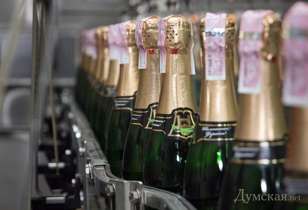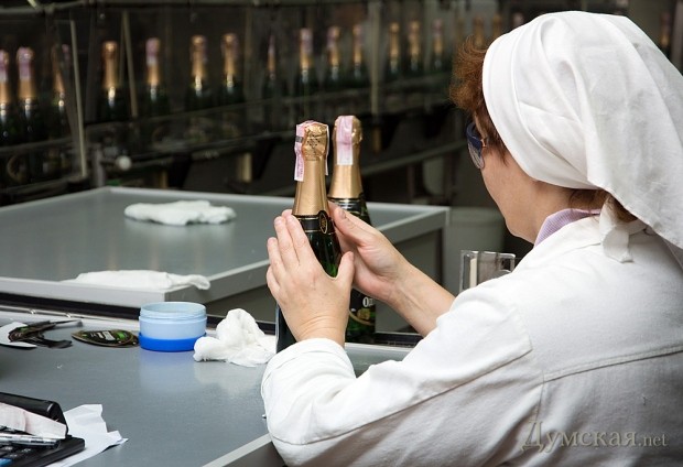 «Думской» продемонстрировали весь цикл производства одесского шампанского. Появлению вина на прилавках предшествует долгий процесс, который начинается с закупки виноматериалов и заканчивается наклеиванием этикеток на бутылки. Сырье завод закупает исключительно у хозяйств юга Одесской области, что, кстати, является стандартной практикой для большинства виноделов страны.