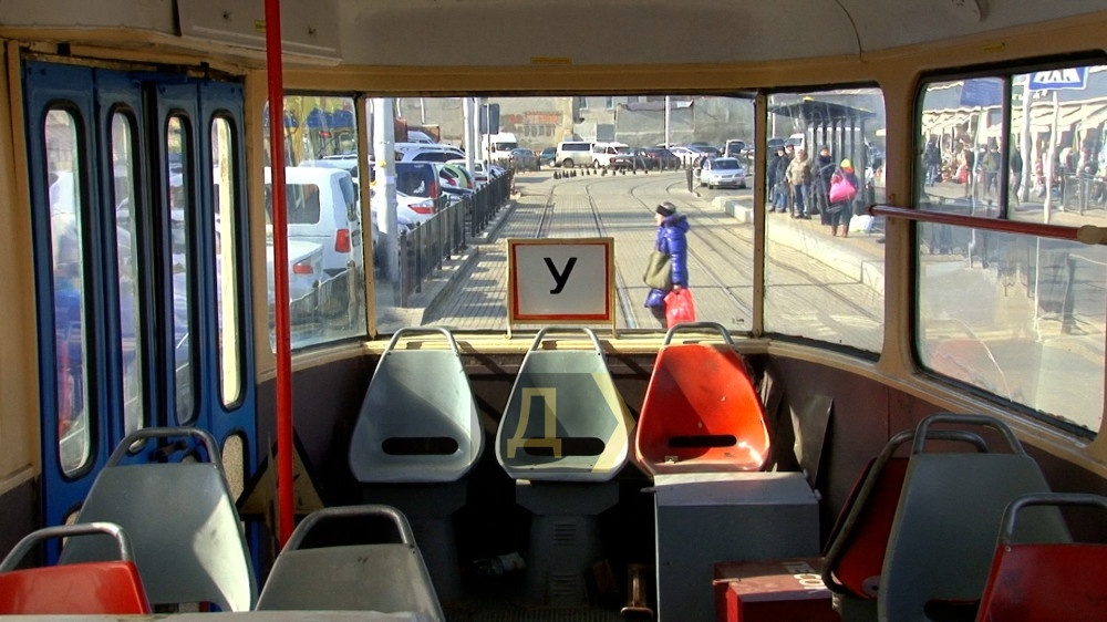 Учебный трамвай под управлением Лилии делает круг по Старосенной площади. Курсантка–ватман хорошо поставленным голосом объявляет название остановки.