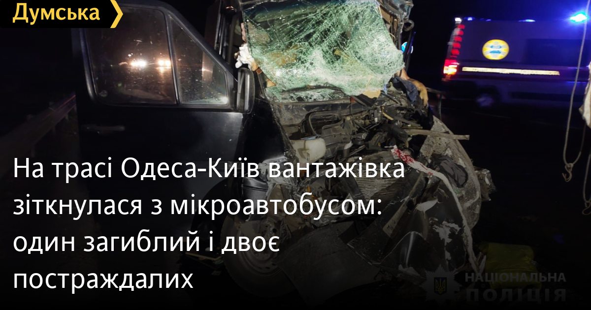 На трасі Одеса-Київ вантажівка зіткнулася з мікроавтобусом: один загиблий і двоє постраждалихАварія за участю вантажного автомобіля КамАЗ і мікроавтобуса Volkswagen сталася ввечері 30 вересня на трасі Одеса-Київ неподалік Петровірівки Березівського району. Як повідомили в поліції, під час розвороту водій вантажівки з причепом не переконався в безпеці маневру і виїхав на зустрічну смугу, де зіткнувся з мікроавтобусом. Внаслідок ДТП загинув водій Volkswagen, двох пасажирів КамАЗу доправили до лікарні. Водій вантажного автомобіля від госпіталізації відмовився. Обставини аварії встановлюють правоохоронці. Помітили помилку? Виділяйте слова з помилкою та натискайте control-enter Новини по цій темі: 30 серпня 2025: Машина вилетіла в кювет: мер Рені потрапив в аварію, його мати загинула, а маленький син у лікарні (фото) 18 серпня 2025: Троє загинули, один у лікарні: на трасі Одеса-Рені водій Mercedes не пропустив фуру (фото) 28 липня 2025: П'яний на "Ягуарі" або гіпертонік? Звільнений топ-посадовець одеської поліції хоче повернутися на службу 2 квітня 2025: В Одесі водій BMW спровокував аварію, в якій постраждали п`ятеро людей, і втік (фото, відео) |
