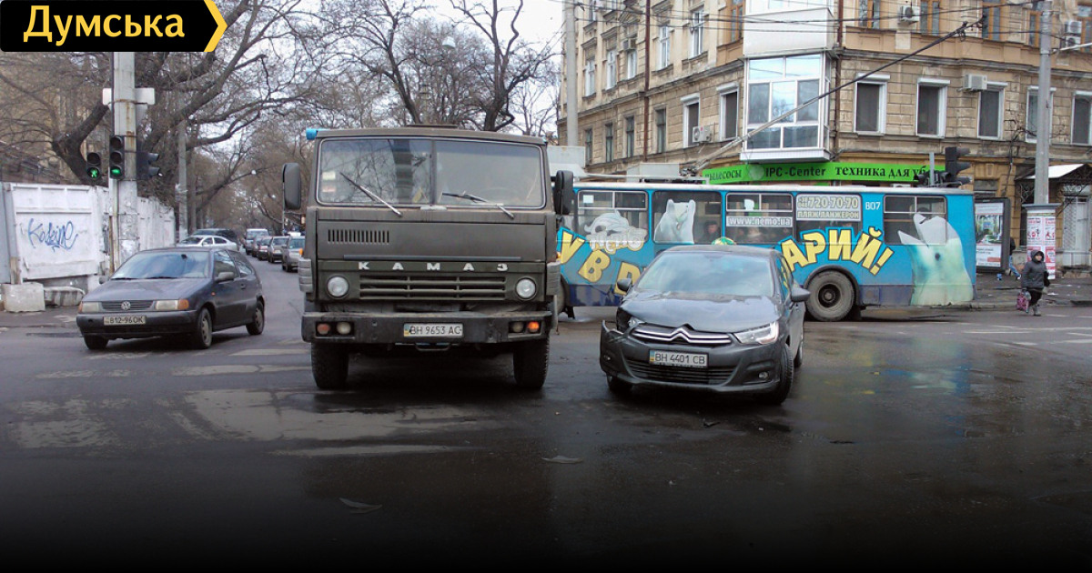 КамАЗ и «Ситроен» не разминулись на Большой Арнаутской