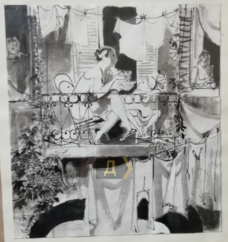 Но вернемся к книге «Амаркорд» и связанным с ней образам. Названием знаменитого фильма Федерико Феллини с романьольского диалекта (режиссер родом из Римини) можно перевести как «Я вспоминаю». Григорий Палатников тоже вспоминает: камбалу, которую несла с Привоза за хвост соседка, когда он был ребенком; полураздетых красоток, которые варят во дворе варенье в медном тазу на примусе, отдыхают на пляже, взаимодействуют с мужчинами и так далее. Чтобы дополнить атмосферу подлинными предметами, в экспозиции присутствуют пляжный зонтик, ласты, авоськи… В воспоминаниях Палатникова мирная, раскованная, кокетливая Молдаванка выглядит волшебно. Будем помнить ее именно такой.