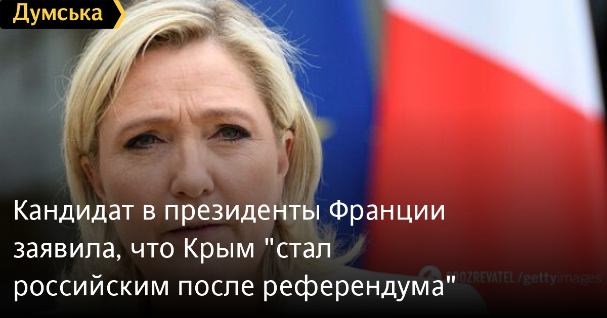 Кандидат в президенты Франции от ультраправой партии «Национальное объединение» Марин Ле Пен, вышедшая во второй тур выборов, подтвердила, что считает оккупацию Крыма россией законной.