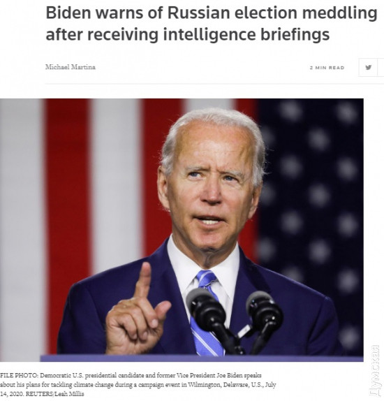 Кандидат в президенты США Байден: «Русские продолжают попытки делегитимизировать наш избирательный процесс»Кандидат в президенты США Джо Байден заявил, что имеет данные о попытках России вмешаться в предстоящие выборы. Об этом сообщает «Цензор.НЕТ» со ссылкой на Reuters. «Мы знали раньше, и я гарантирую вам, что знаю сейчас, потому что теперь я снова получаю информацию. Русские продолжают попытки делегитимизировать наш избирательный процесс. Это факт», — заявил Байден. Он предупредил, что если Россия продолжит вмешиваться, ей «придется заплатить реальную цену», если он победит на запланированных на 3 ноября выборах президента США. СМЕРТЬ РОССИЙСКИМ ОККУПАНТАМ! Заметили ошибку? Выделяйте слова с ошибкой и нажимайте control-enter |