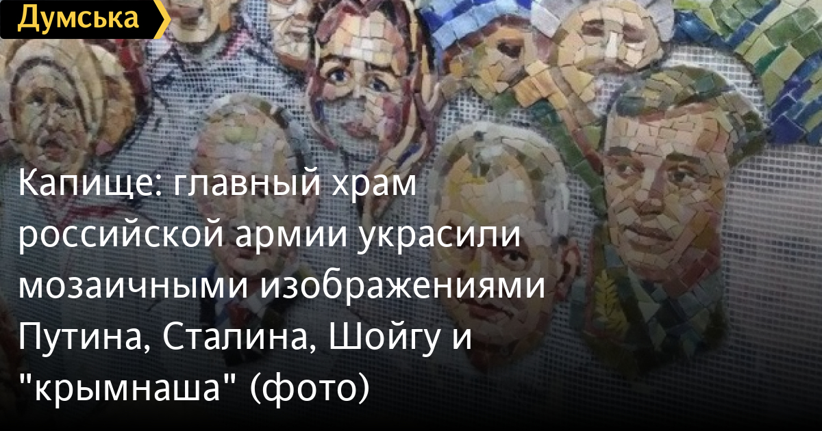 Мозаичные изображения советского диктатора Иосифа Сталина, президента РФ Владимира Путина, министра обороны РФ Сергея Шойгу и других одиозных личностей — как живых, так и мертвых — украсят главный храм вооруженных сил России, который строится в подмосковной Кубинке.