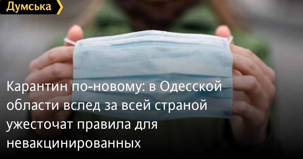 6 декабря в Украине вступят в силу новые правила адаптивного карантина. В первую очередь ужесточение карантина коснется невакцинированных граждан, отметила в ходе брифинга директор департамента здравоохранения Одесской обладминистраци Наталья Одарий-Захарьева.