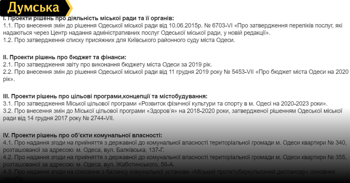 Сессия городского совета проходит в эти минуты в Одессе. Как передает корреспондент «Думской», в зале собралось 50 депутатов и работники СМИ. Многие надели маски и медицинские респираторы, но городской голова Геннадий Труханов и его заместители средств индзащиты не используют. Даже Павел Вугельман, который вчера записал ролик, дав мастер-класс по изготовлению маски из подручных средств. Геннадий Труханов предложил исключить из исполкома не появляющегося с осени на рабочем месте первого вице-мэра Анатолия Орловского, которого он сегодня уволил. Вместо него в исполком войдет Сергей Подгайный. С голоса принимают включение в повестку дня более двух десятков вопросов. Выступает Павел Вугельман. Говорит о том, что «эпидемия в наших руках» — надо просто соблюдать правила и не выходить лишний раз из дома. Просит соблюдать дистанцию в бюветах и в супермаркетах. Обещает каждый день проводить брифинги оперативного штаба и транслировать их онлайн. СМЕРТЬ РОСІЙСЬКИМ ОКУПАНТАМ! Помітили помилку? Виділяйте слова з помилкою та натискайте control-enter |