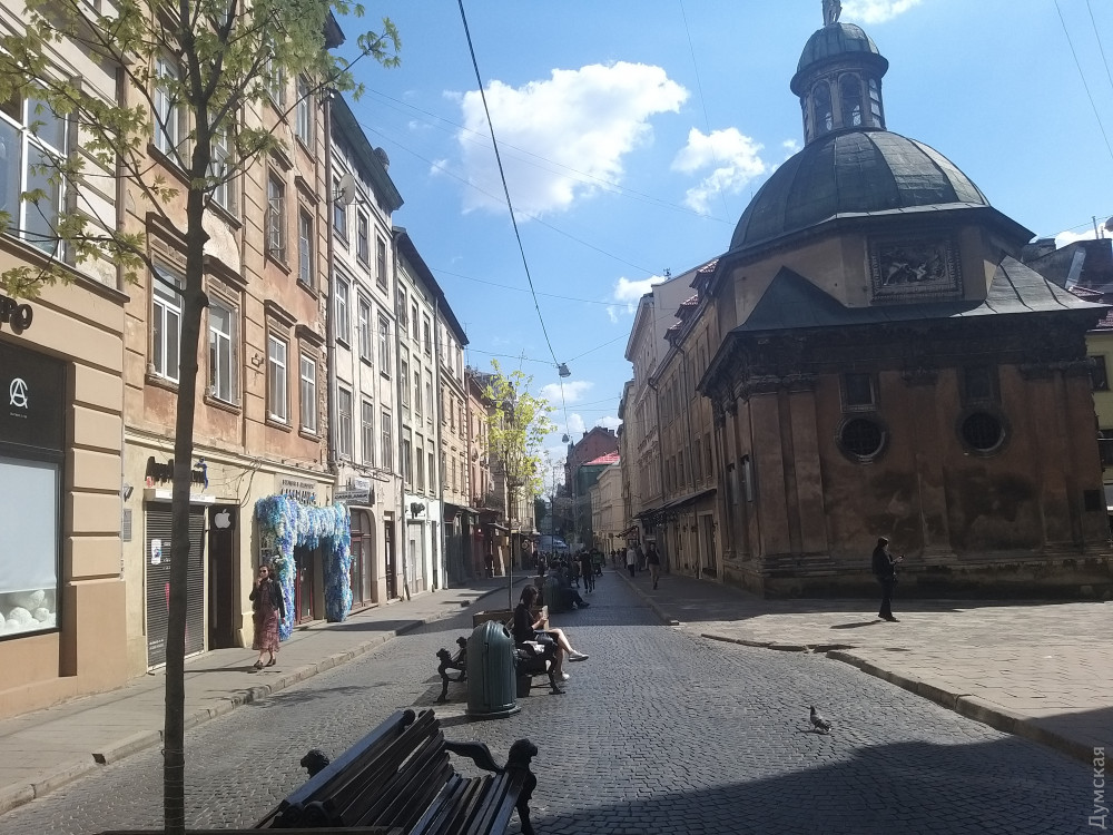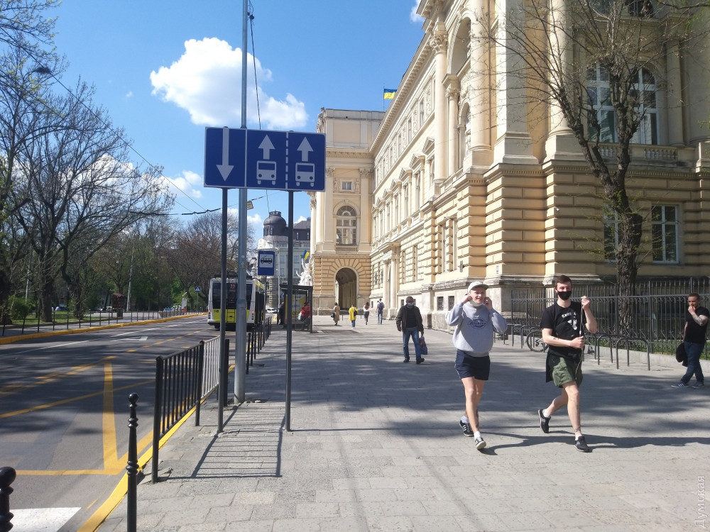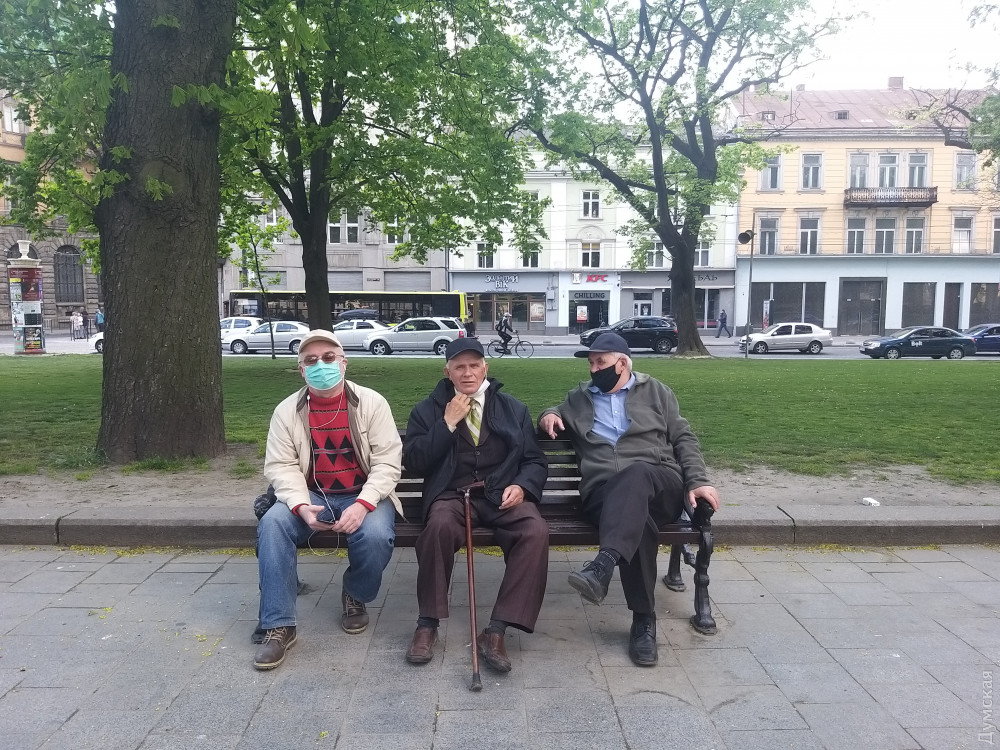 Цього тижня на вулицях Львова людей побільшало. Вони гуляють, сидять на лавочках у скверах, спілкуються. Багато хто без маски, в інших — маска на підборідді. Схоже, з приходом справжньої весни львів’яни розслабились і геть забули про небезпеку.