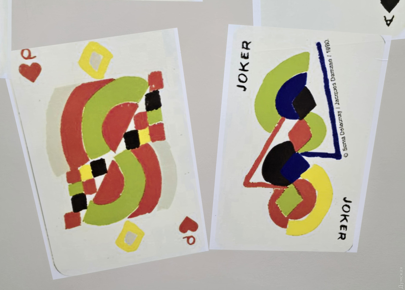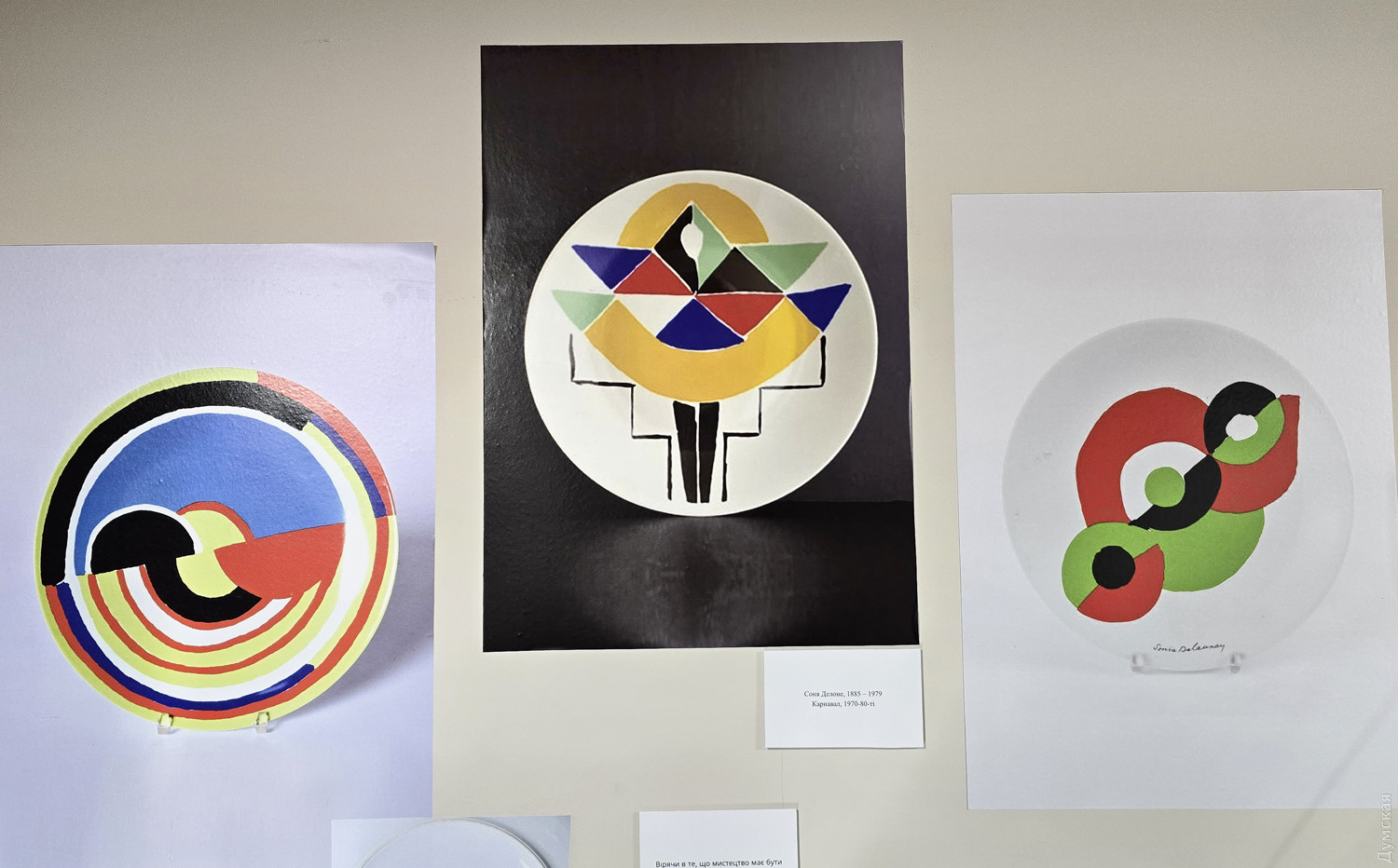 Виставкою «Симультанний дизайн» Музей сучасного мистецтва Одеси (Європейська, 31/33) продовжує серію виставок, присвячених 140-річчю відомої французької художниці, знаменитої одеситки Соні Делоне. Глядачів познайомили з живописом мисткині, з її моделями одягу, тепер мова про дизайнерські проєкти. Виставка організована Інститутом Розвитку Одеси та Амбасадорами Культури. Побравшися у Парижі з художником Робером Делоне, Соня Терк отримала і родинне щастя, і творчий союз, до якого додала українське захоплення соковитими, чистими кольорами. Пара створила напрямок у мистецтві під назвою симультанізм. Щодо симультанного сполучення фарб: коли в одному просторі співставлені контрастні кольори, один з них ніби йде у глибину, інший, навпаки, випливає на поверхню твору. Кубізм яскраво проявився насамперед у ковдрочці з клаптиків різноколірного шовку (зараз знаходиться в музеї Помпіду), що його відтак пошила Соня для свого маленького сина Шарля, який згодом став видатним істориком та теоретиком джазу. Поет Гійом Аполлінер, ознайомившись з життєрадісними абстрактними картинами Робера Делоне, порівняв їх з музикою Орфея, так з’явився термін «орфізм». Соня також розробляла в живопису принцип симультанних контрастів, але на тривалий час полишила живопис чоловіку та увійшла до світу моди. Симультанну сукню, зроблену нею для балу Бюл’є знов-таки з клаптиків тканини, досі показують на виставках у знаних музеях світу. Соня у цій сукні справила фурор, вразивши Блеза Сандрара, в тому-таки 1913 році він написав вірша «На сукню вона має тіло». Втім, моді Соні Делоне присвячувалася попередня виставка МСМО з цього циклу, а зараз починаємо огляд з вітрини, де красуються три вкриті розписом тарілки. «Соня почала захоплюватися керамікою від початку Першої світової війни, коли вони з чоловіком поїхали до Іспанії, — говорить спеціаліст МСМО Вероніка Магась. – Там-таки вона зацікавилася ілюстрацією, створенням аксесуарів. На початку двадцятих повернулася до Парижу та відкрила «Симультанний бутік» (Boutique Simultané), зайнялася комерційною діяльністю. Після революції в росії Соня не отримувала більше грошової підтримки від своїх родичів. Їй довелося в основному забезпечувати родину, бо Робер Делоне вважав, що заробляти на мистецтві нешляхетно, його справа – творити. А вона захотіла заробляти, виявилася не лише хорошою художницею-авангардисткою, а й здібним підприємцем, однією з кращих бізнесвумен свого часу». Чим цікаві ці тарілки з музейної колекції? Зазвичай вони випускалися серіями, як «Сигнал» та «Віндзор». Але «Карнавал» є скоріше пробним друком, одним із перших зразків лімітованої серії. Тарілки музей придбав на аукціонах у Франції. Соню запрошували читати спецкурс лекцій в Сорбонні «Як живопис впливає на модний дизайн». Навесні 1958 року, прагнучи співпрацювати з сучасними художниками, Німецький музей гральних карт (Deutsches Spielkartenmuseum) у Білефельді запропонував Делоне ідею створити дизайн колоди з її характерними абстрактними зображеннями. Грати такими картами, певно, важко, символи спрощено до невпізнання (чирвова масть виглядає як бубнова), це скоріше сувенірний арт-об'єкт, аніж утилітарна річ. Рекламні плакати Соня створювала для свого «Симультанного бутіка», де продавалися манто та інший одяг, популярний передусім через принти Соні. Але не тільки. 