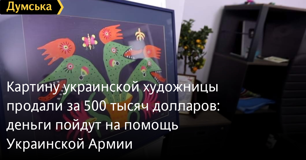 Картину известной украинской художницы Марии Примаченко «Цветы выросли возле четвертого блока» продали на аукционе за 500 тыс. долларов. Все вырученные от продажи средства пойдут на помощь Вооруженным силам Украины.