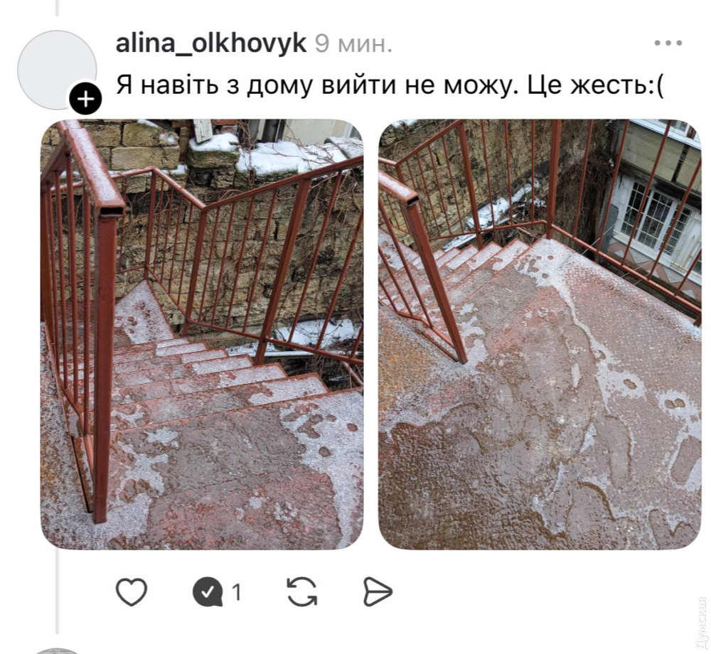 Каша на дорогах, каток во дворах и ДТП по всему городу: Одессу парализовал гололед (обновляется)Из-за ночного снега с дождем и резкого понижения температуры улицы Одессы превратились в настоящий каток, а проезжая часть — в «кашу». Передвигаться по городу крайне сложно, а плохая видимость и скользкое покрытие уже привели к многочисленным авариям в разных районах, передают корреспонденты «Думской». Несмотря на сложную обстановку, в мэрии заявляют, что почти 1600 коммунальщиков посыпают песчано-солевой смесью спуски, подъемы и основные магистрали. По состоянию на 9:00 использовали уже 502 тонны смеси, на линии работают 49 единиц спецтехники. Реагентами также обрабатывают придомовые территории и выходы из парадных, тротуары и пешеходные переходы, остановки общественного транспорта, подходы к бюветам и общественным уборным. В то же время соцсети переполнены сообщениями о том, что большинство тротуаров и придомовых территорий остаются необработанными, а пешеходные зоны превратились в зону повышенного травматизма. В Гидрометцентре Черного и Азовского морей сообщают о желтом уровне опасности. В течение суток 26 января ожидаются порывы ветра до 15–20 м/с, а утренний туман ограничил видимость до критических 200–500 метров. Всех участников дорожного движения призывают к максимальной осторожности. Водителям стоит выбирать безопасную скорость, избегать резких маневров и строго соблюдать дистанцию. Маршруты лучше планировать заранее с учетом заторов и сложности проезда. Пожилым людям, беременным женщинам и детям рекомендуется максимально ограничить пребывание на улице. СМЕРТЬ РОССИЙСКИМ ОККУПАНТАМ! Заметили ошибку? Выделяйте слова с ошибкой и нажимайте control-enter |