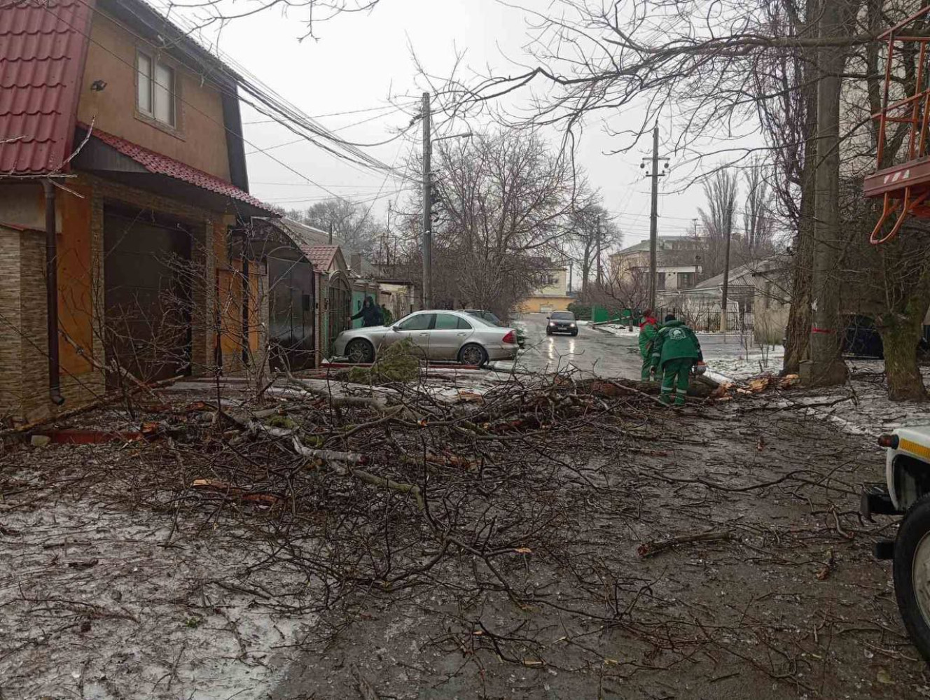 Но многие одесситы жалуются, что в городе каток. А еще на дороги и провода падают ветки. Одесса превратилась в большой каток.